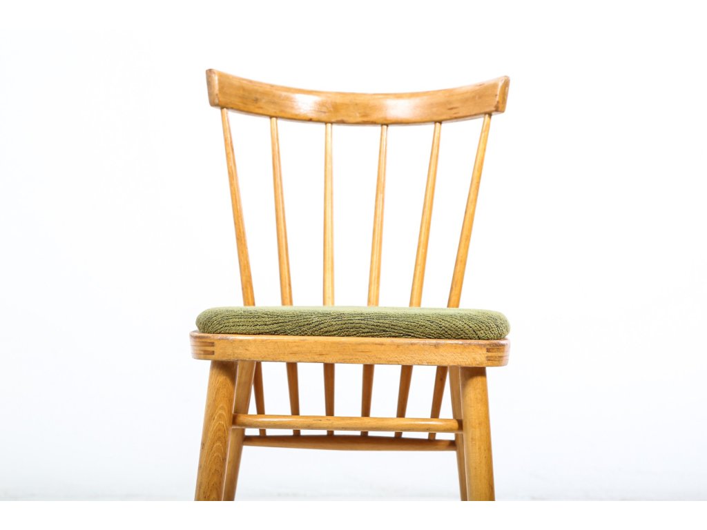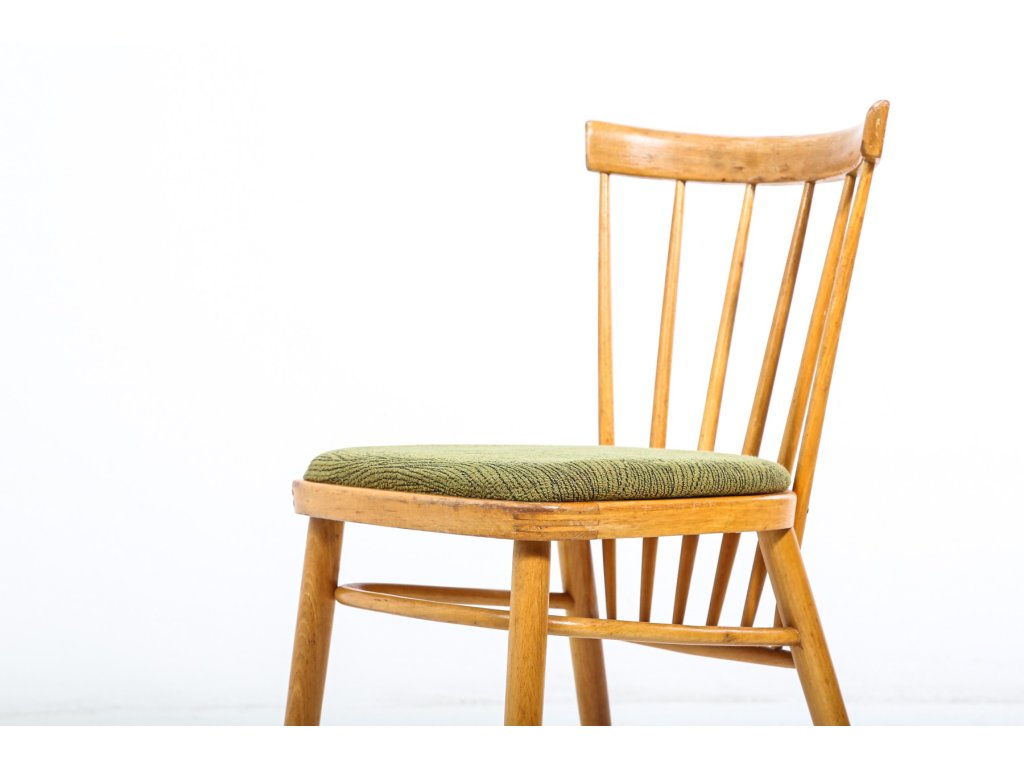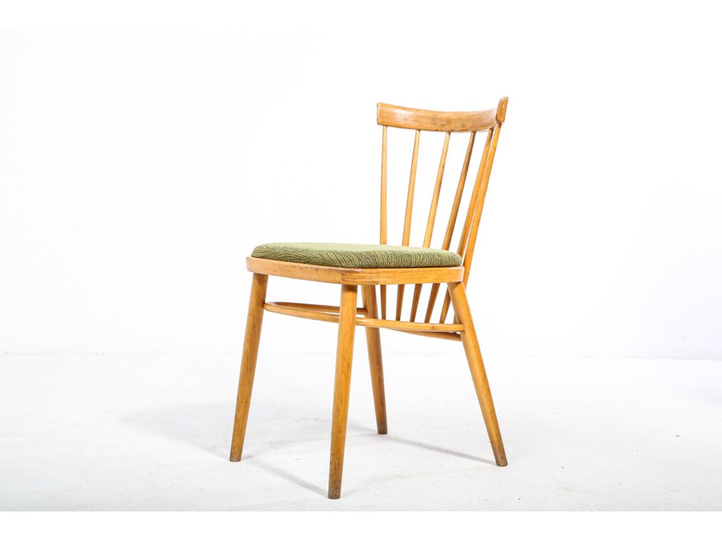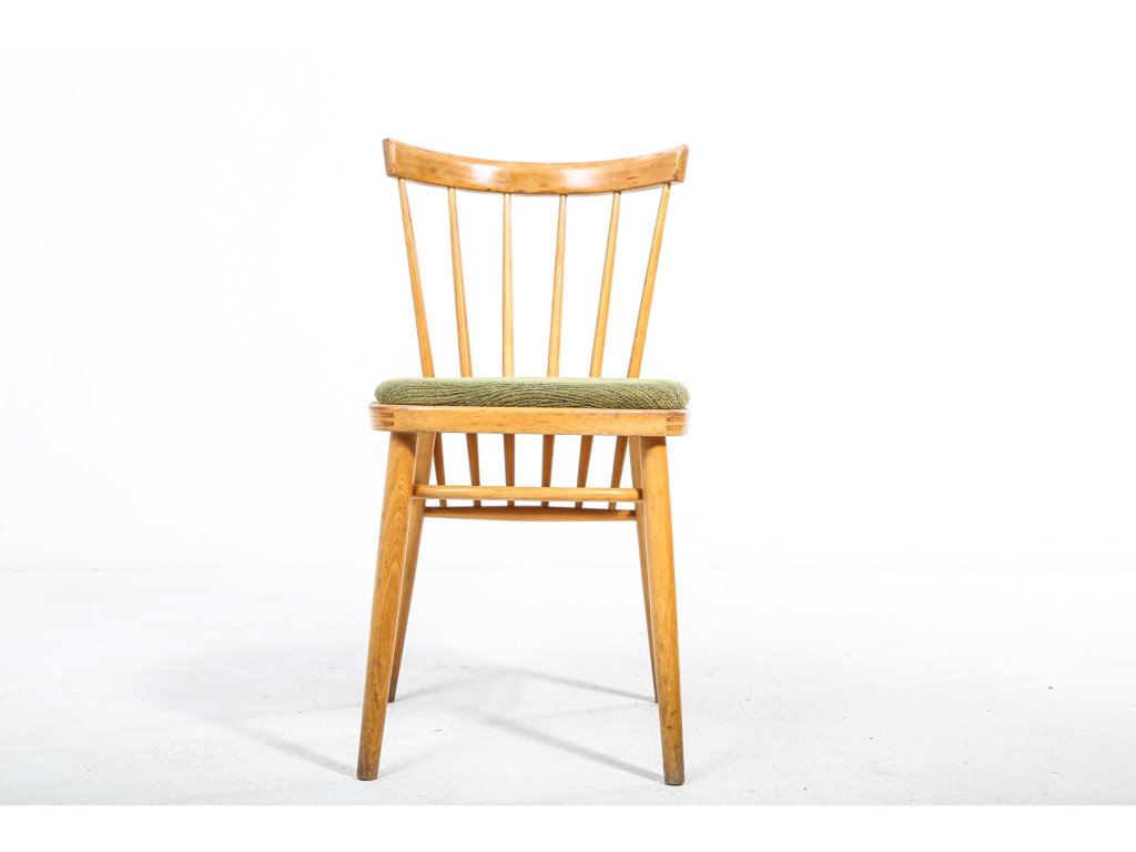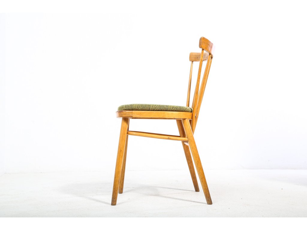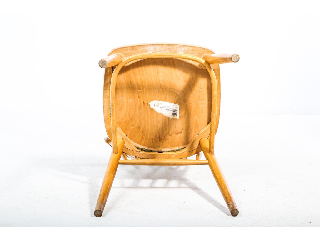 Stabilní dřevěná konstrukce, čalounění místy znečištěné.