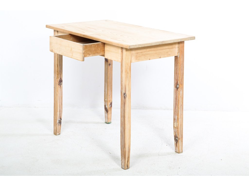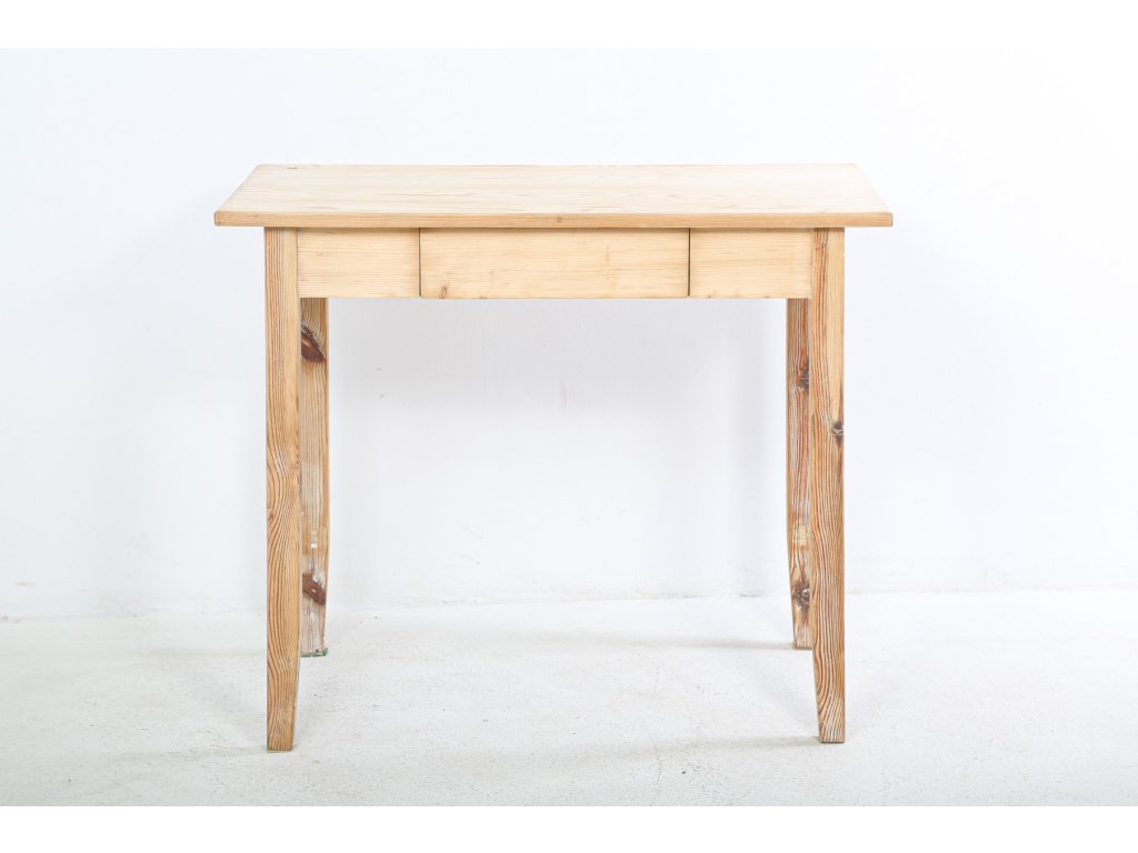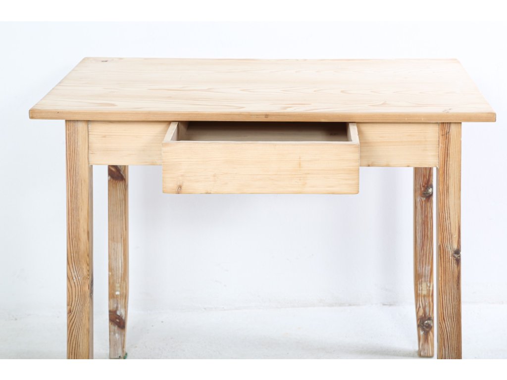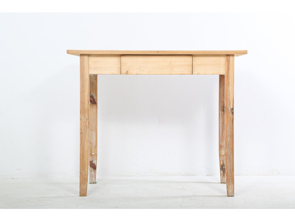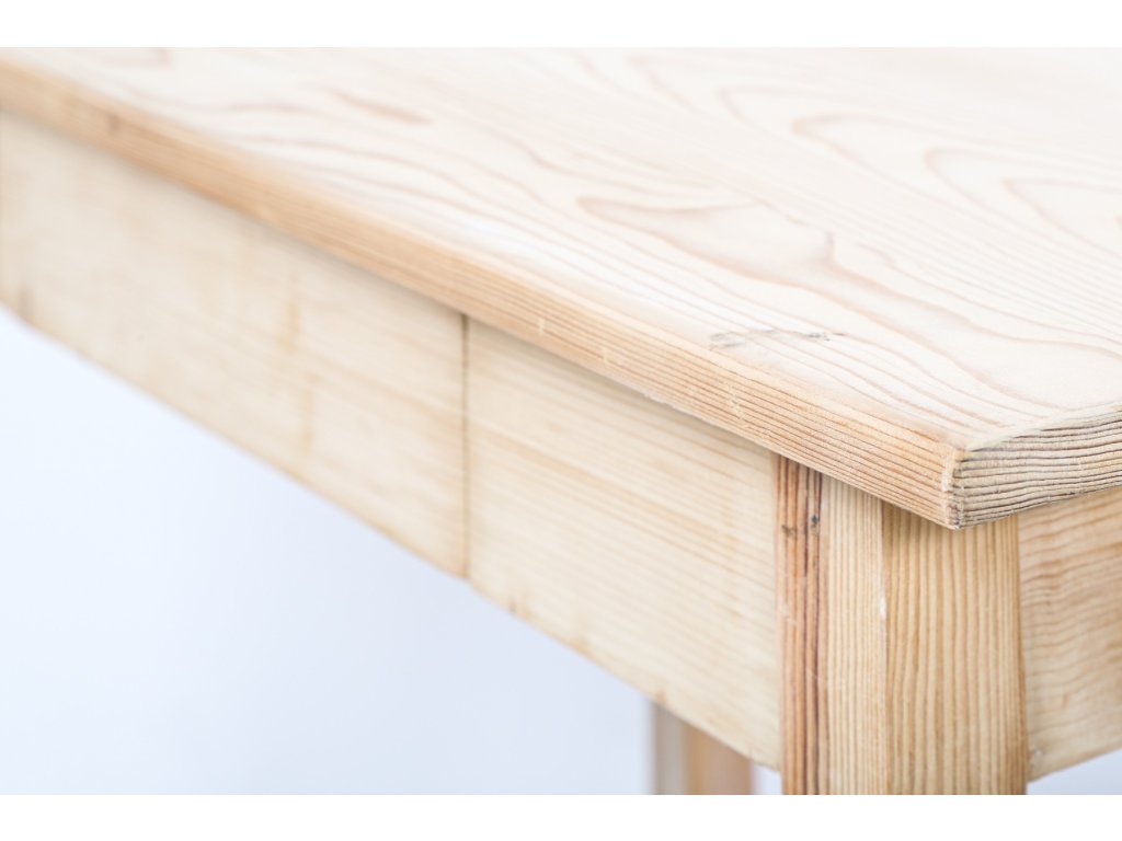 Stůl kuchyňský, jídelní. Dřevěná stabilní konstrukce. Bez nátěru a laku. Zásuvka bez úchytu.
