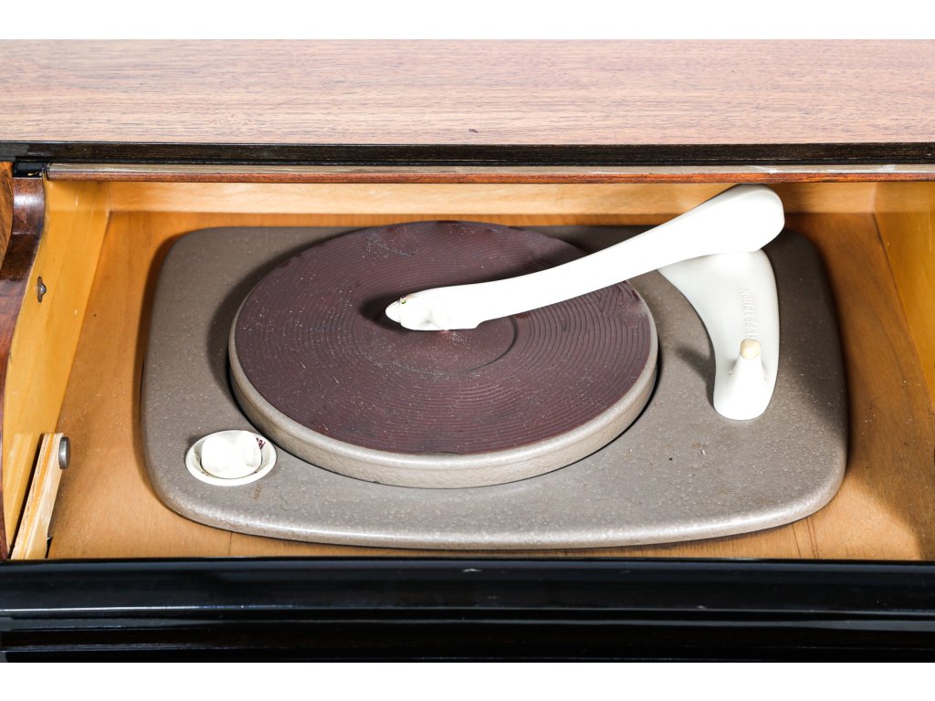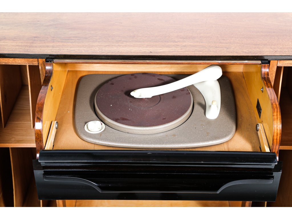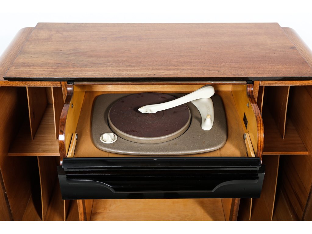 Komoda, gramoskříňka dle návrhu arch. J. Halabaly, výroba UP závody, 60. léta.