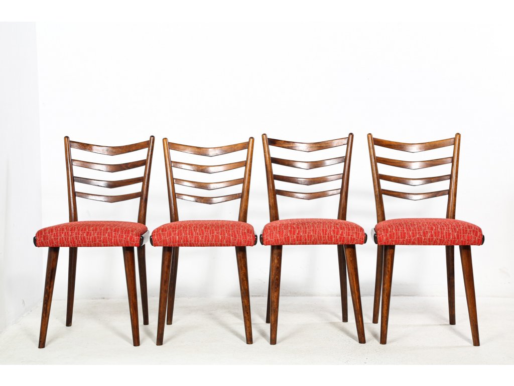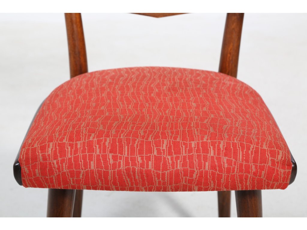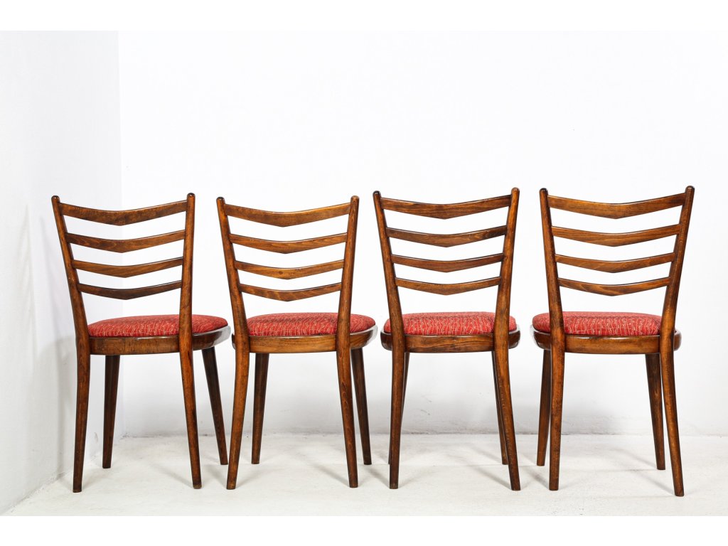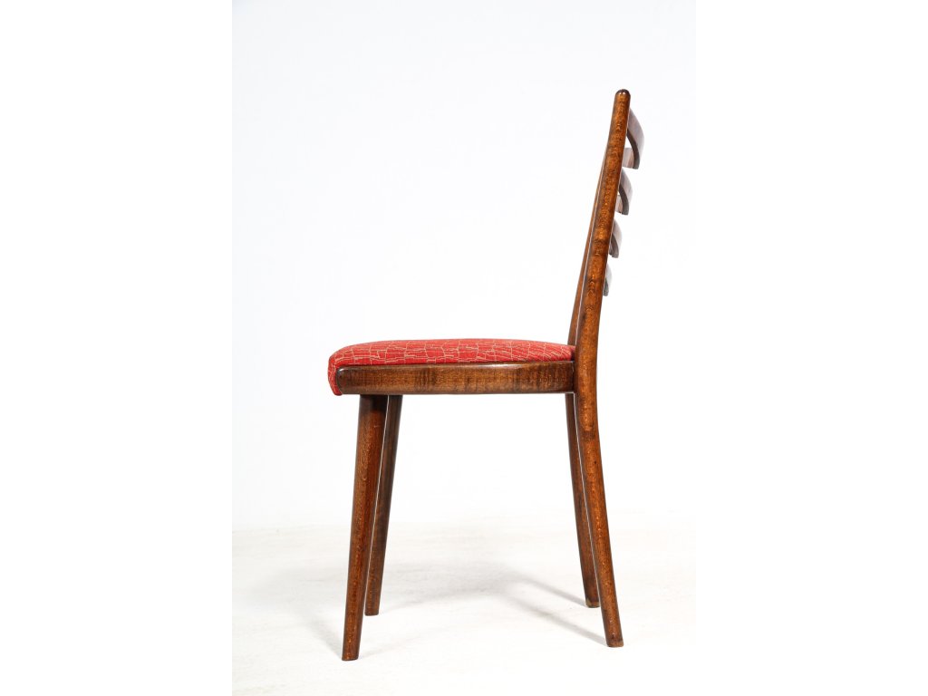 Stabilní dřevěná konstrukce, čalouněné podsedáky místy znečištěné.