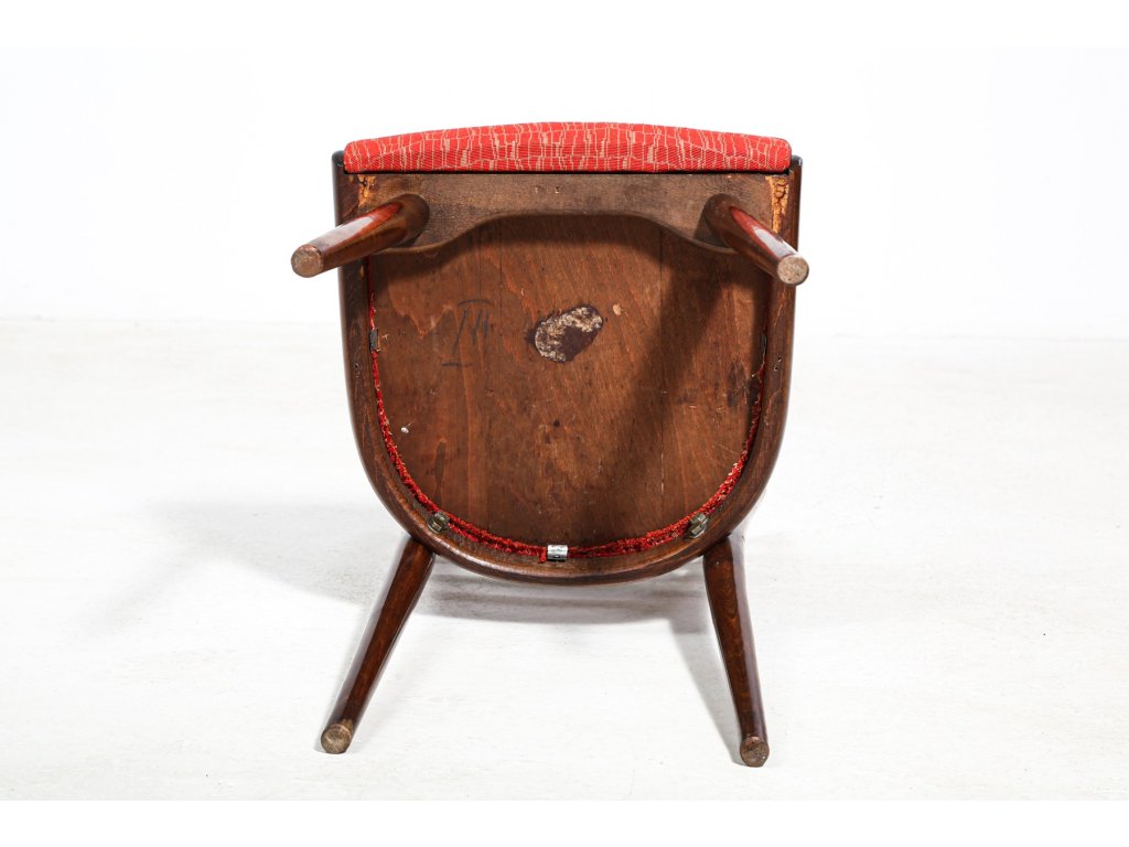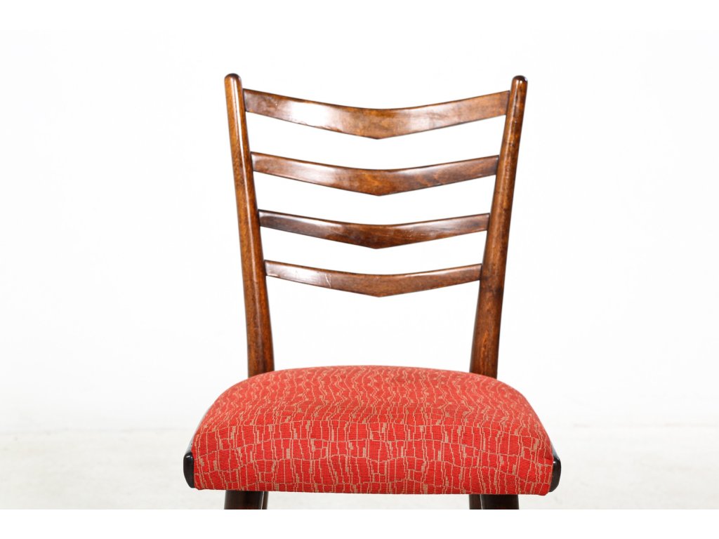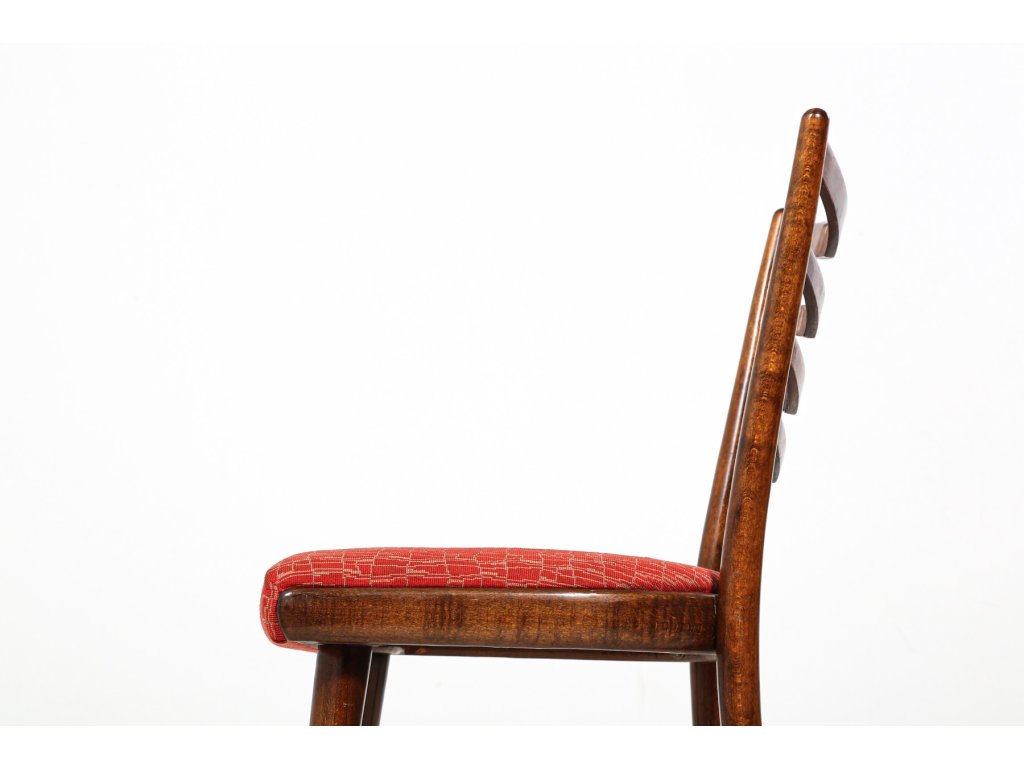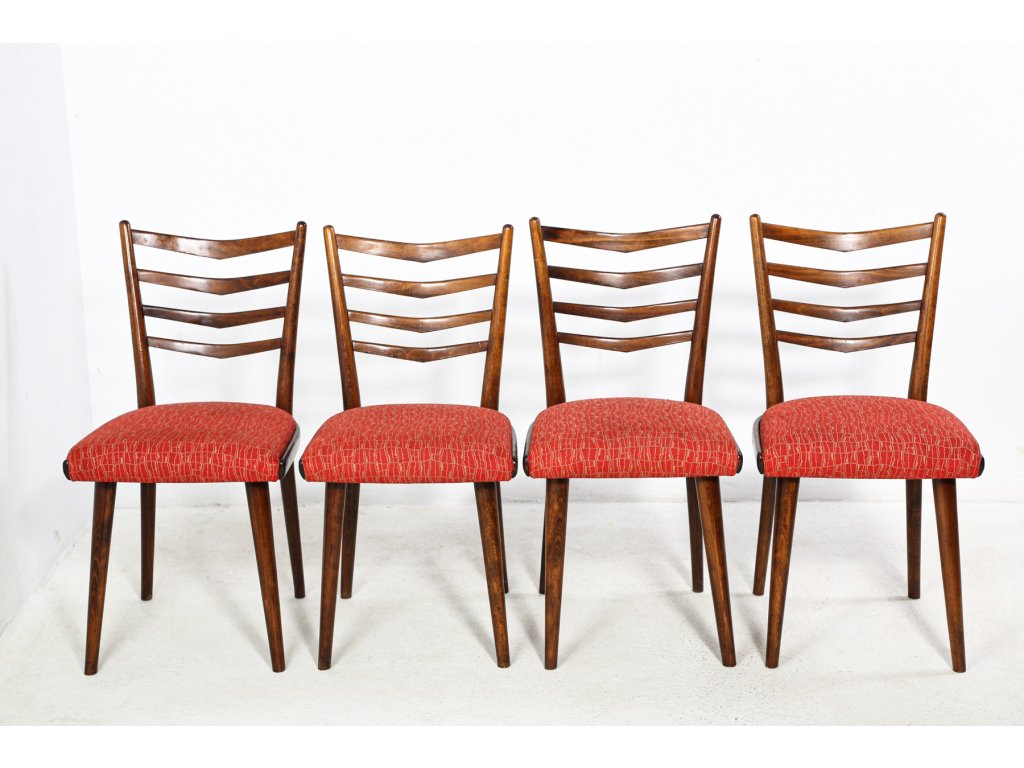 Stabilní dřevěná konstrukce, čalouněné podsedáky místy znečištěné.