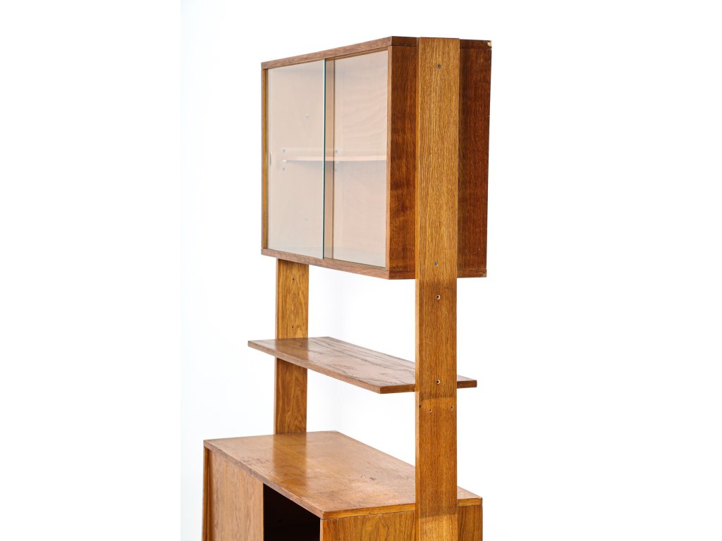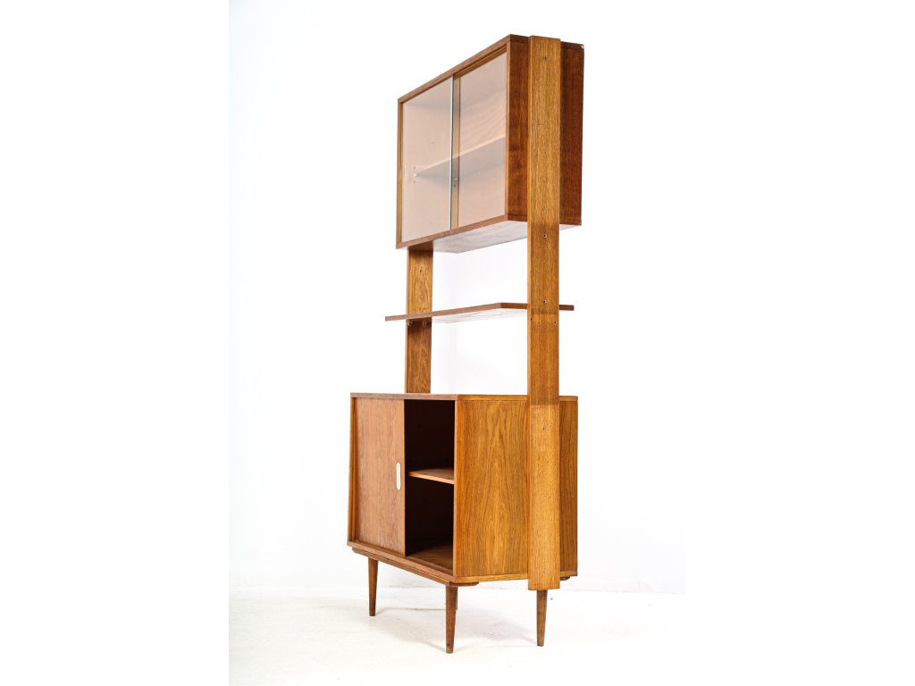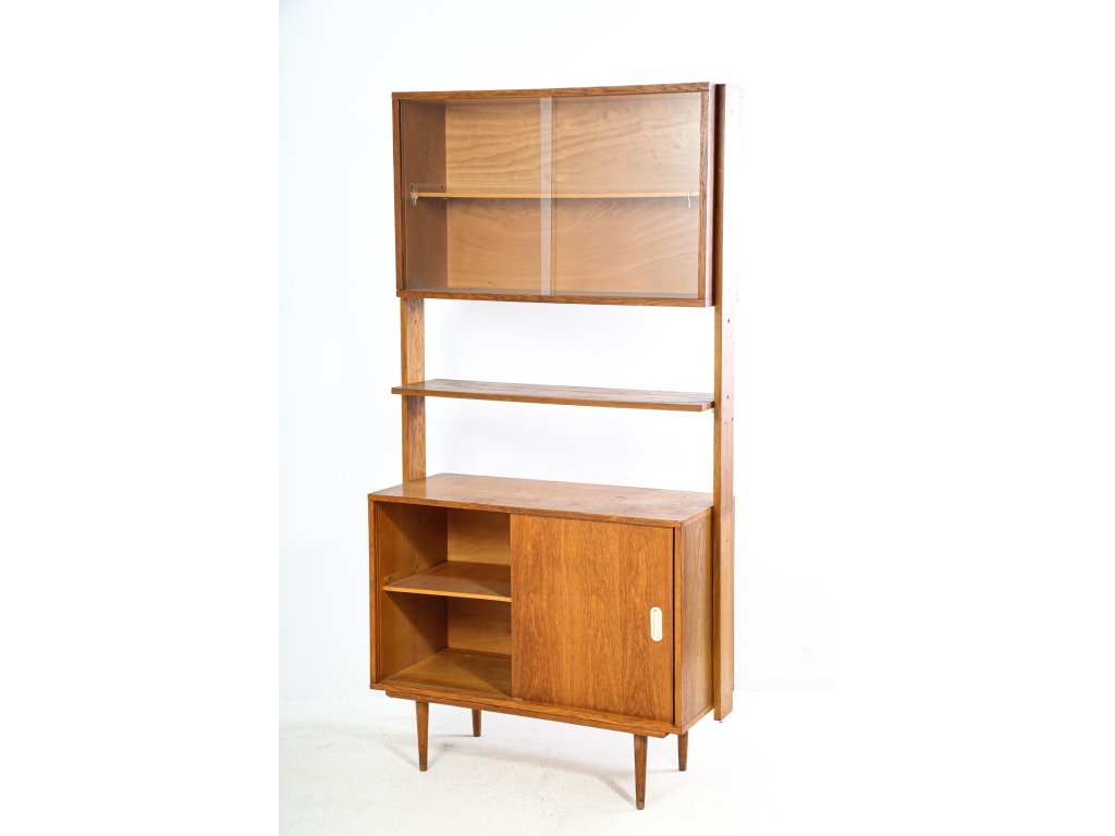 Policová komoda U-452 - J. Jiroutek s posuvnými dvířky. Sektorový nábytek, 60. léta.
