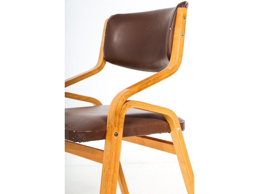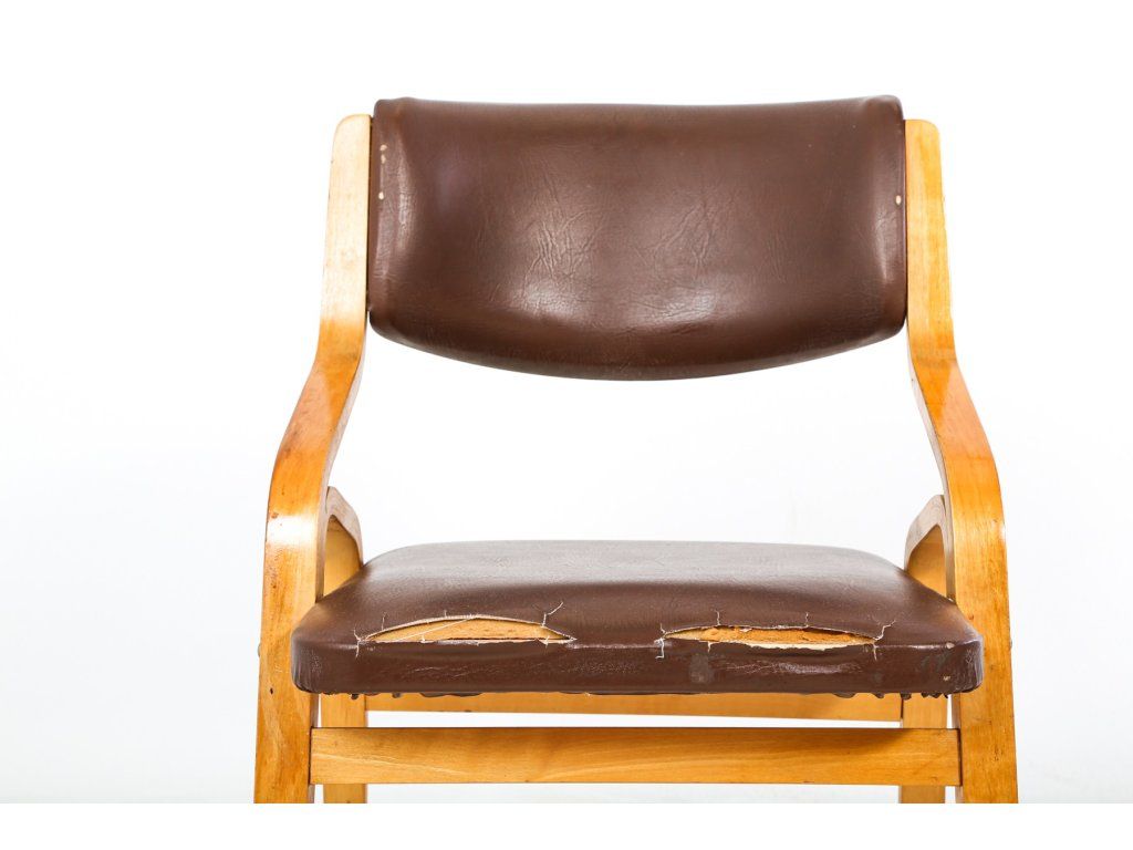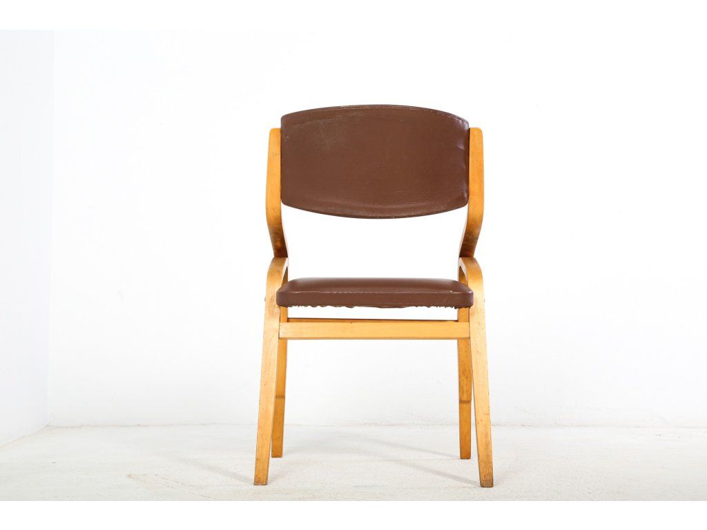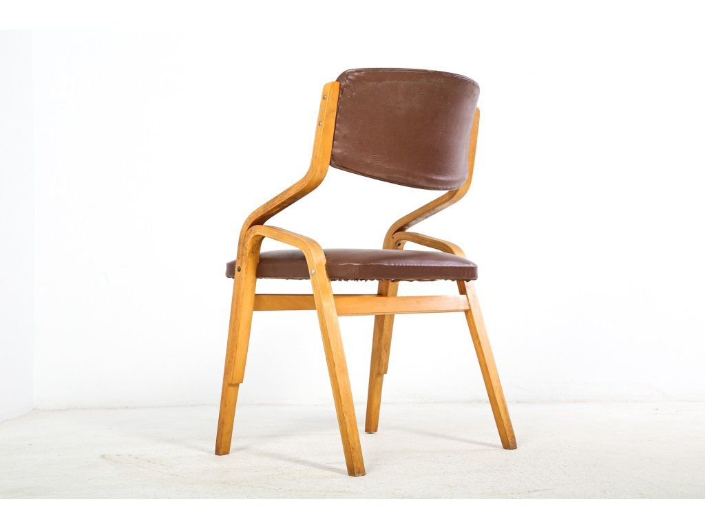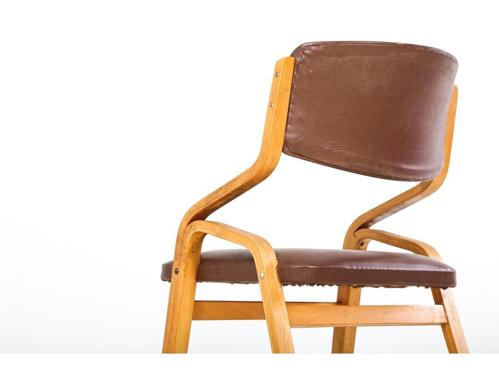 Židle s koženkovým polstrováním. Krásný tvar, dřevěná konstrukce stabilní.