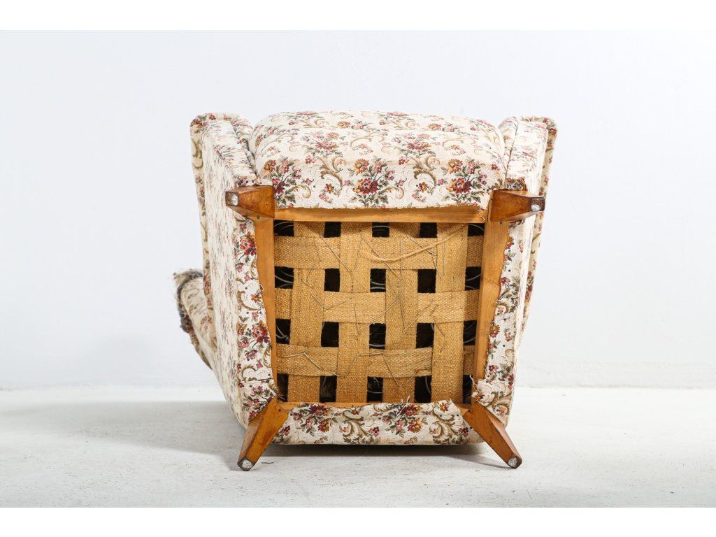 Dřevěná konstrukce v pořádku, polstrování s mírnými odřeninami.