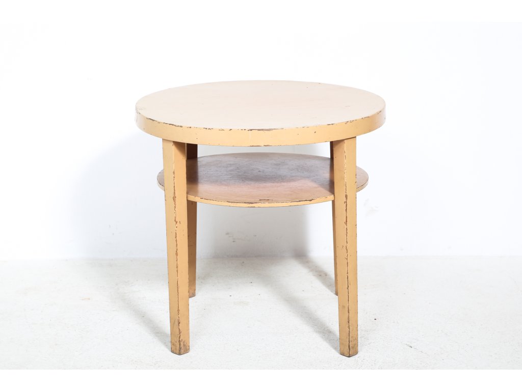 Retro. Konstrukčně stabilní, původní stav změněn nátěrem. Rozměry: výška 66 cm, průměr 65 cm.