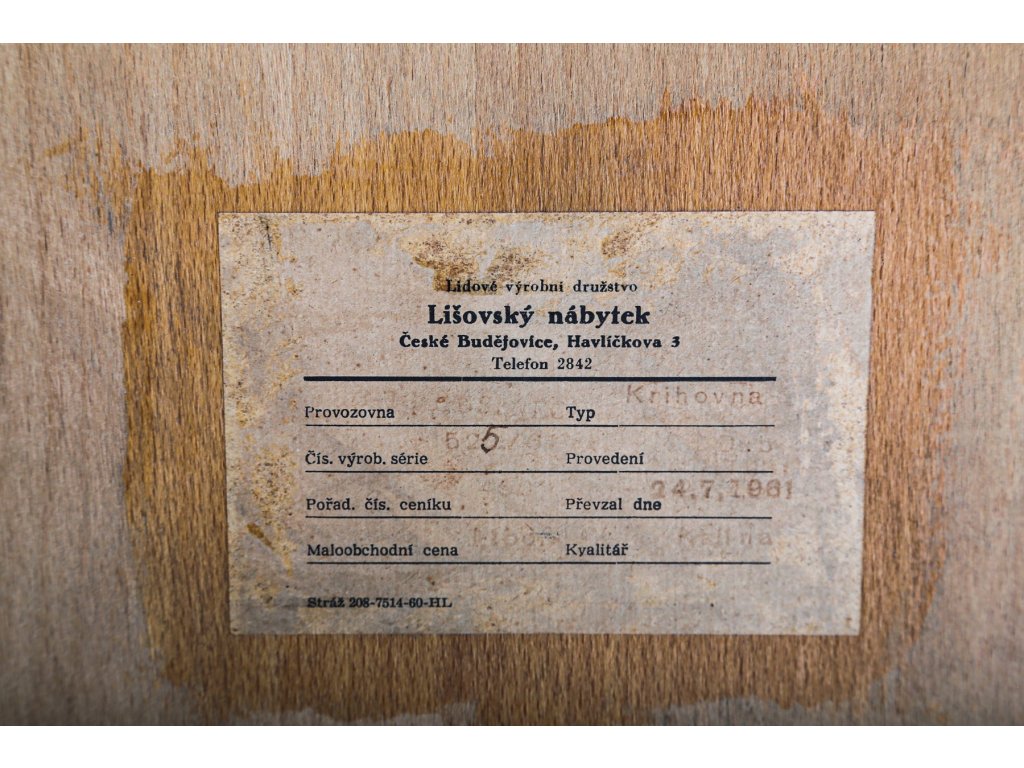 Výrobce: Lišovský nábytek, 60. léta.
