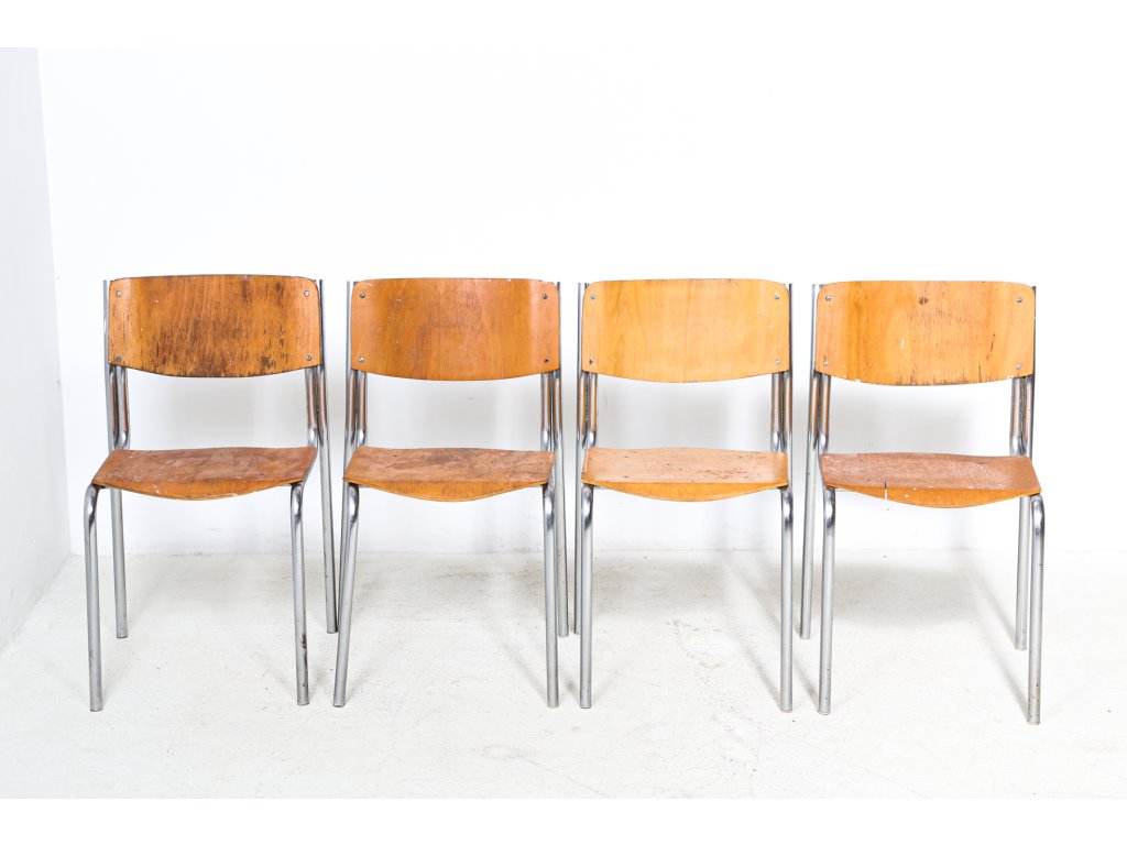 Retro, 90. léta. Chromová konstrukce stabilní, dýha místy s oděrkami. Používané, stav viz foto.