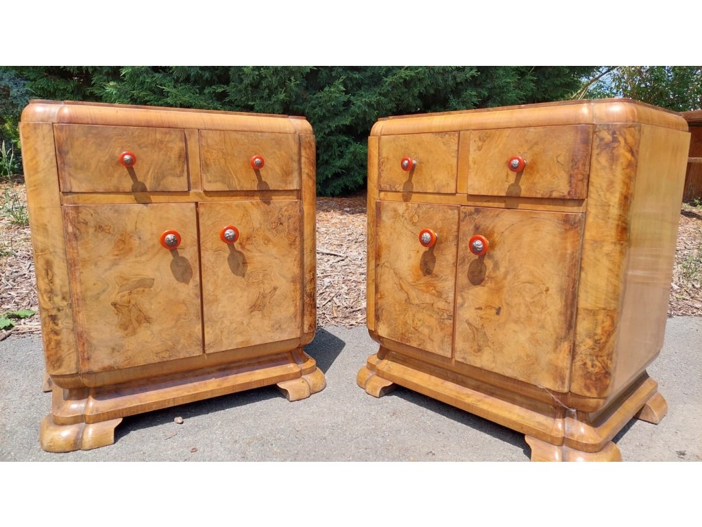 2x Komoda, noční stolek, skříňka, Art Deco, retro