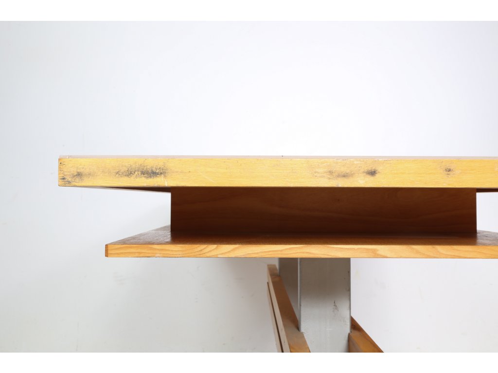 Konferenční stůl z masivu, kovová hohy. Stabilní. Místy oděrky. Používaný, stav viz foto. Rozměry: délka 150 cm, výška 77 cm, šířka 80 cm.