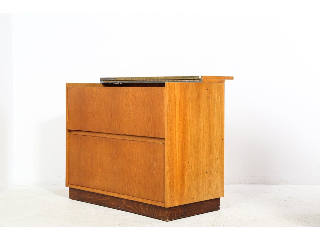 Retro, socialismus, 60. léta. Konstrukčně stabilní, dýha místy poškozená. Používaná, stav viz foto. Rozměry. délka 96 cm, výška 78 cm, šířka 48 cm.