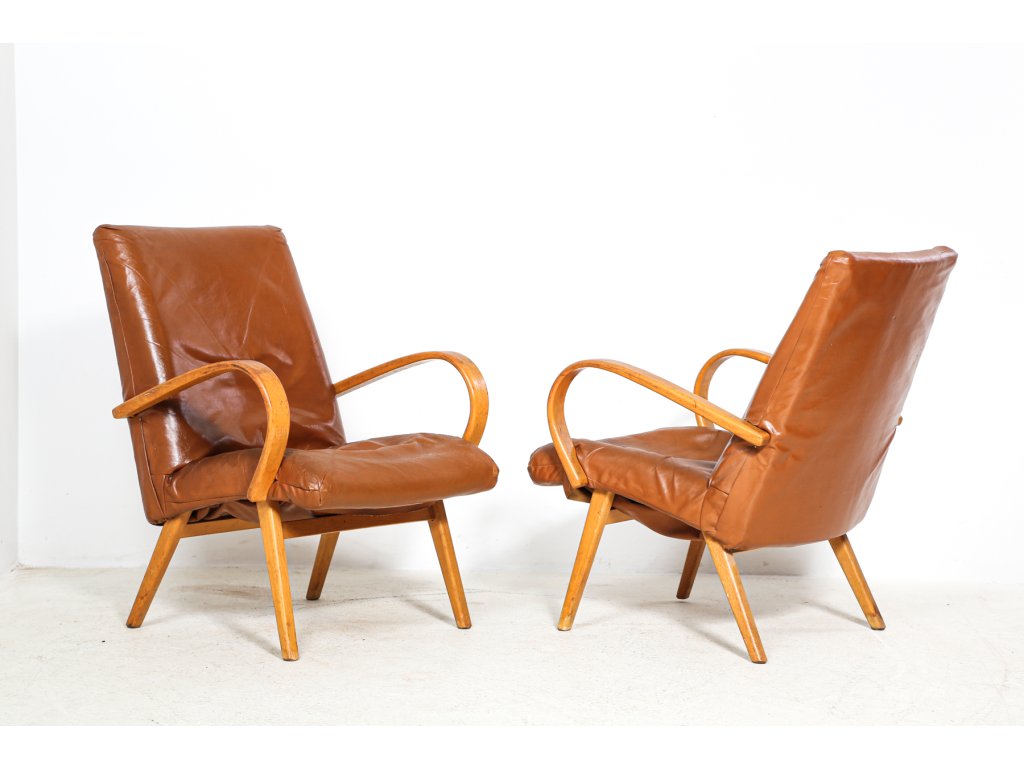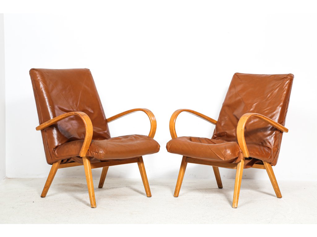 Retro, socialismus. Konstrukčně stabilní, původní čalounění vyměněno za syntetickou kůži. Používaná, stav viz foto. Uvedená cena za pár.