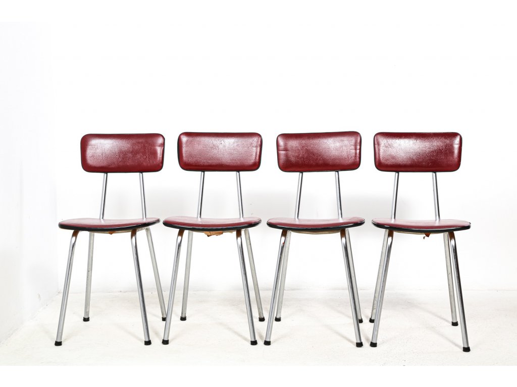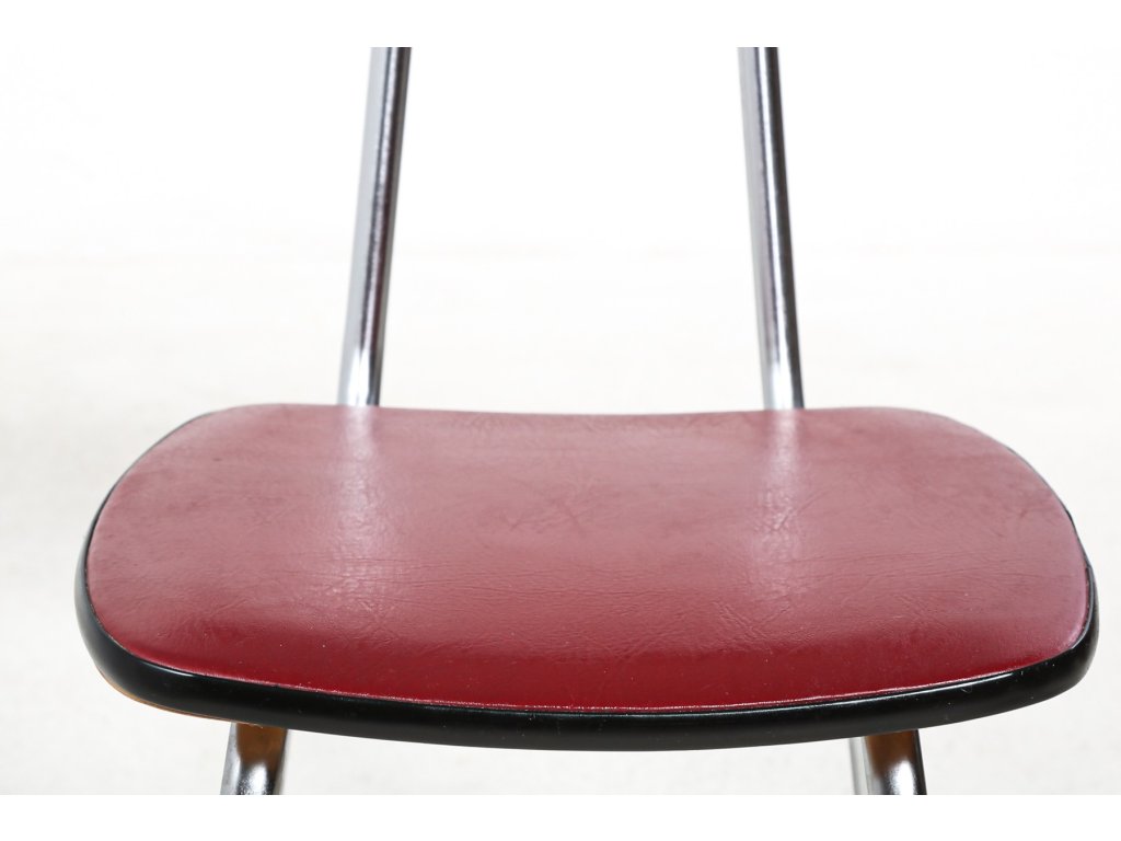 Chromové kovové nohy, koženkové sedáky a opěrky.