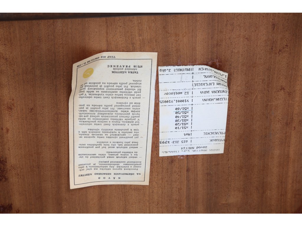 Retro, socialismus. Konstrukčně stabilní, čalounění místy znečištěné. Používané, stav viz foto. Rozměry: výška 84 cm, šířka 41 cm, délka 41 cm.