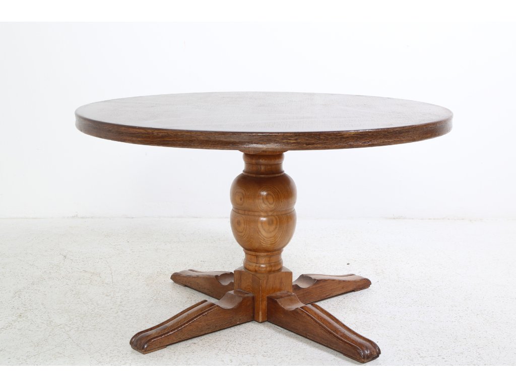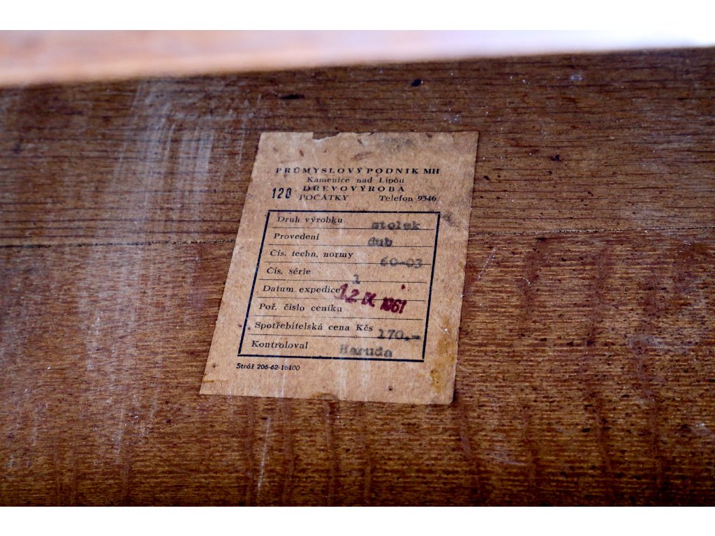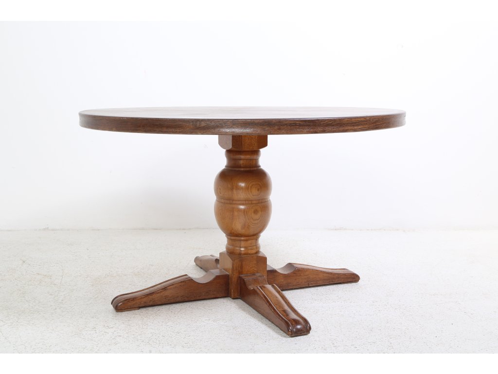 Provedení dub. Retro, 60. léta. Konstrukčně stabilní, používaný. Rozměry: výška 53 cm, průměr desky 88 cm.