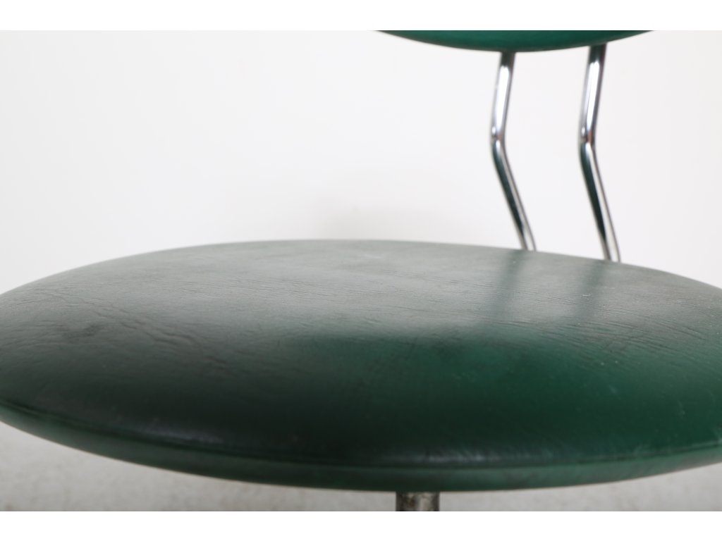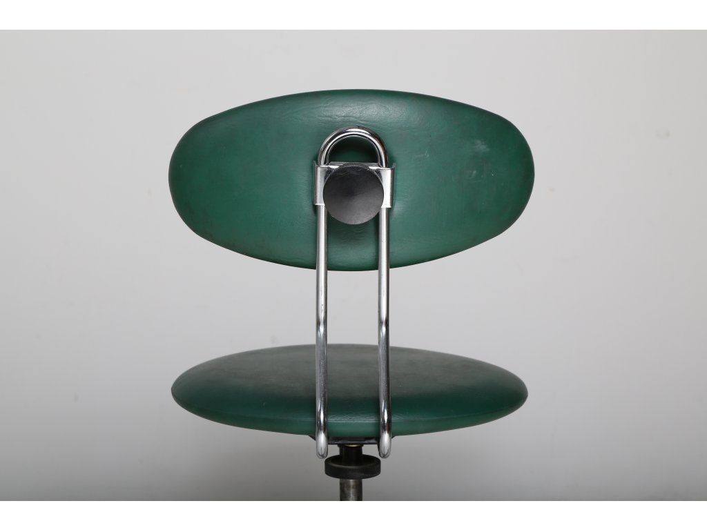 Otočná, nastavitelná výška sedáku. Dobrý nálezový stav. Rozměry: výška 78,5 cm, sedák 39 cm.