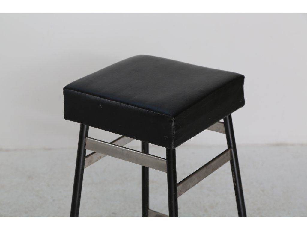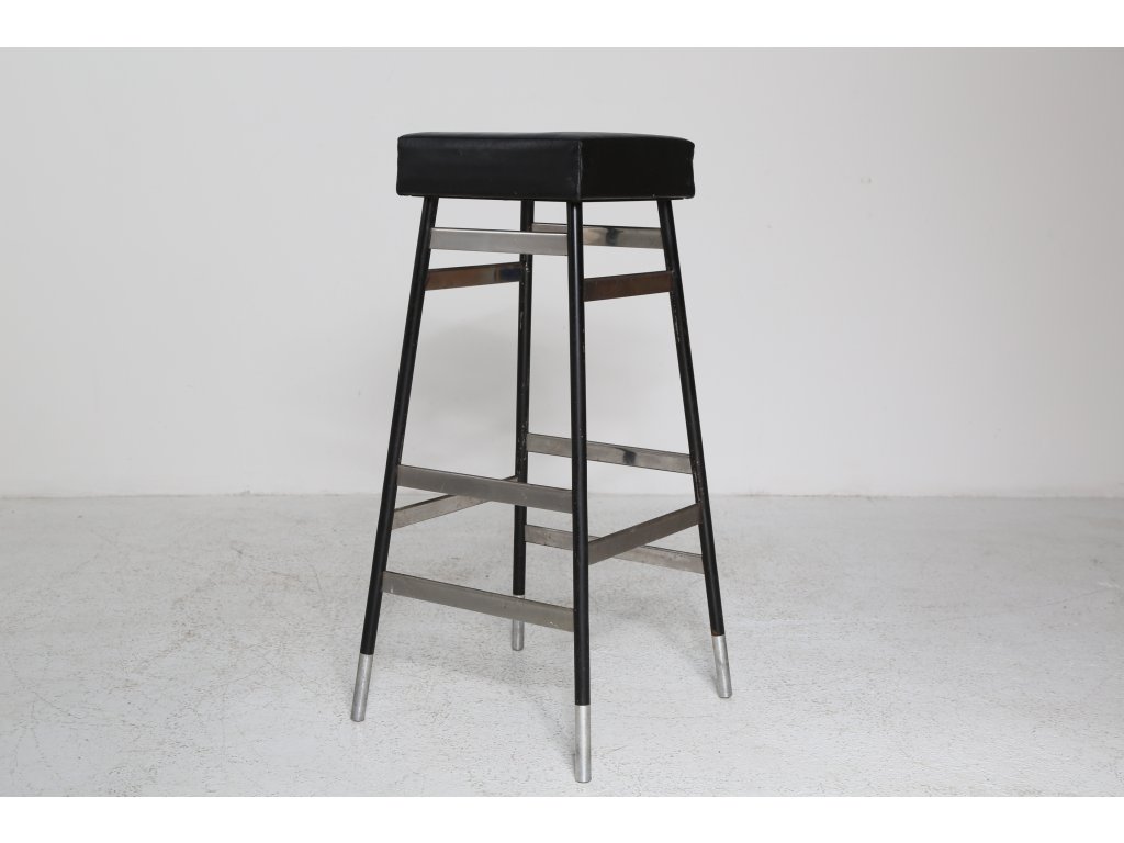 Kovová konstrukce stabilní. Drobné oděrky na sedáku místy. Používaná. Rozměry: výška 81,5 cm, délka 29,5 cm, šířka 29 cm.