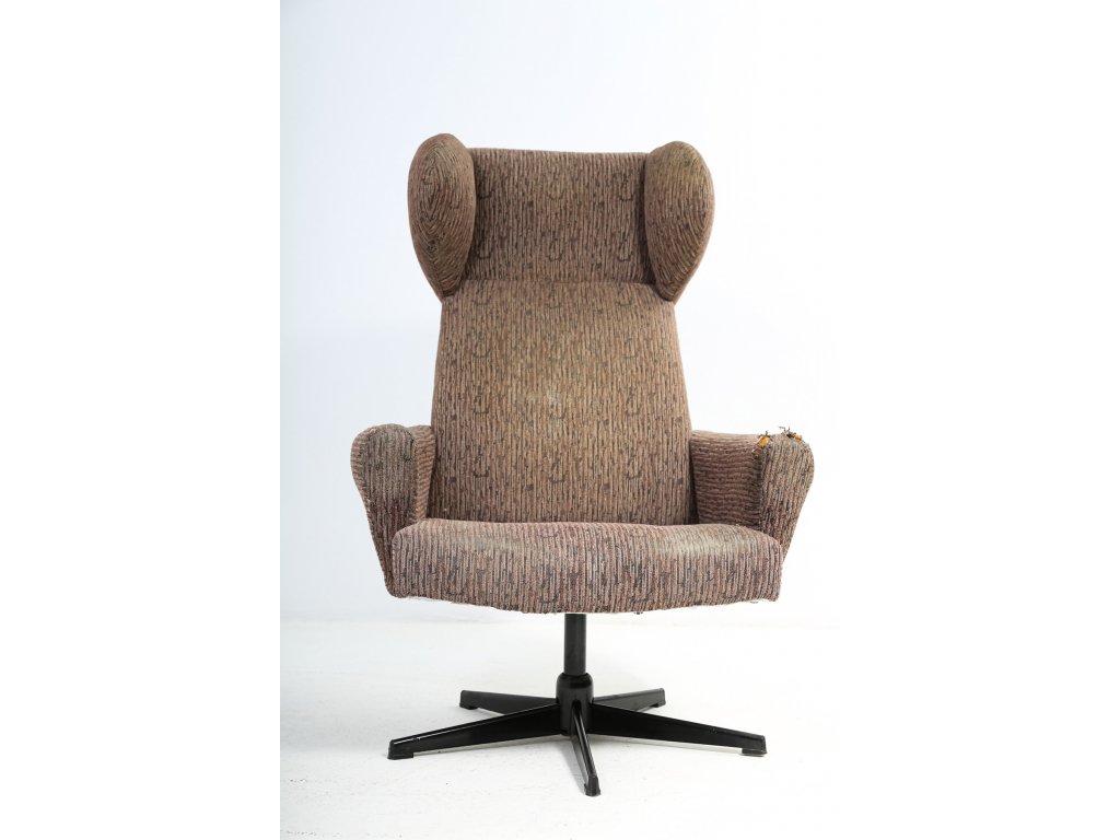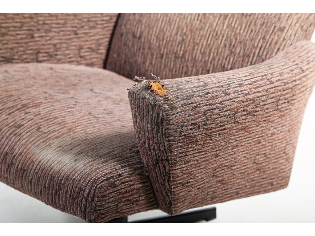 Kovová noha stabilní, čalounění místy s trhlinami.