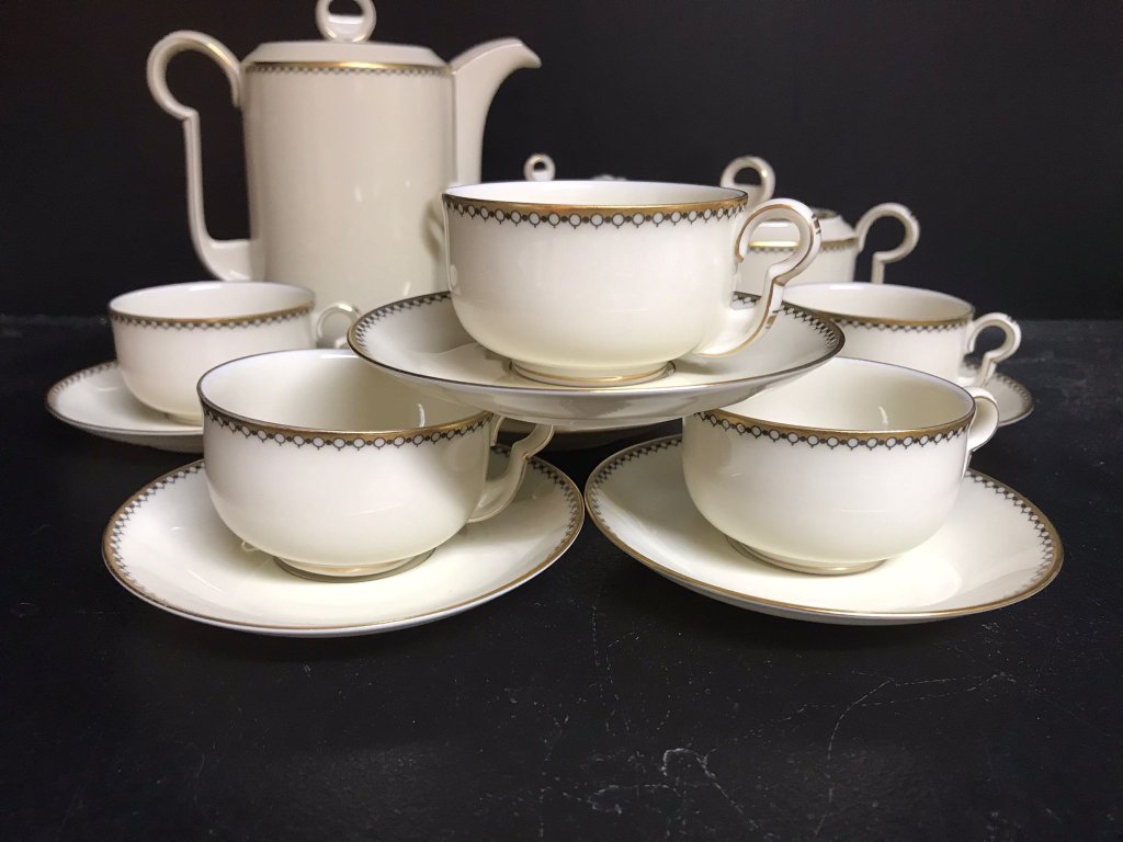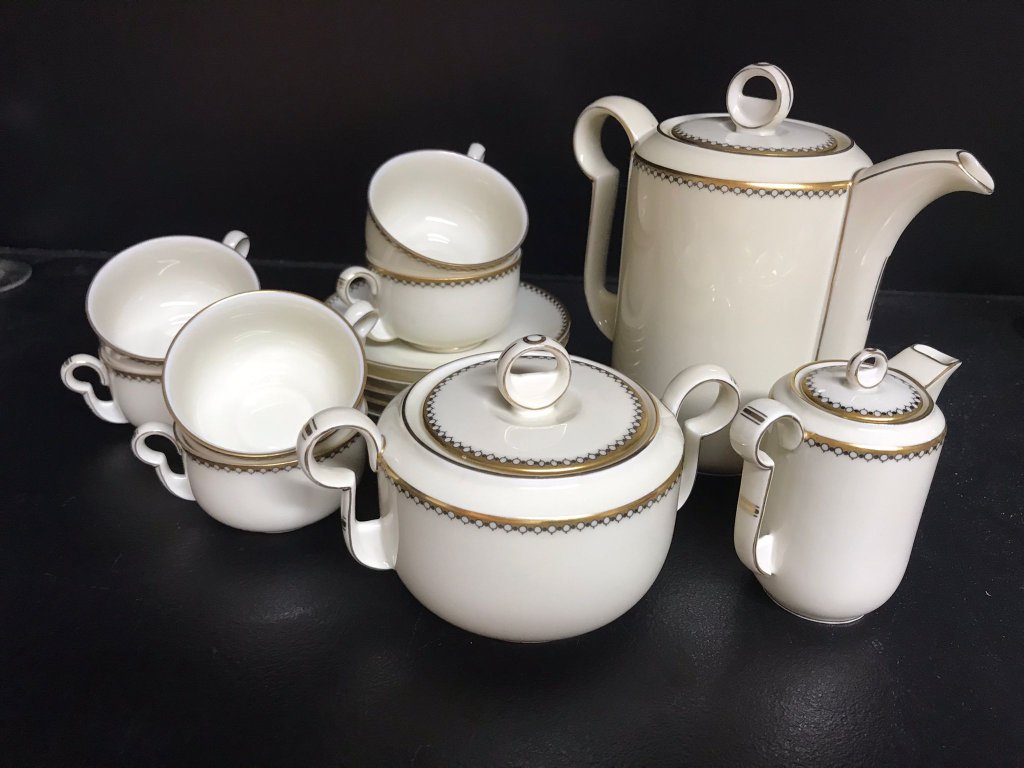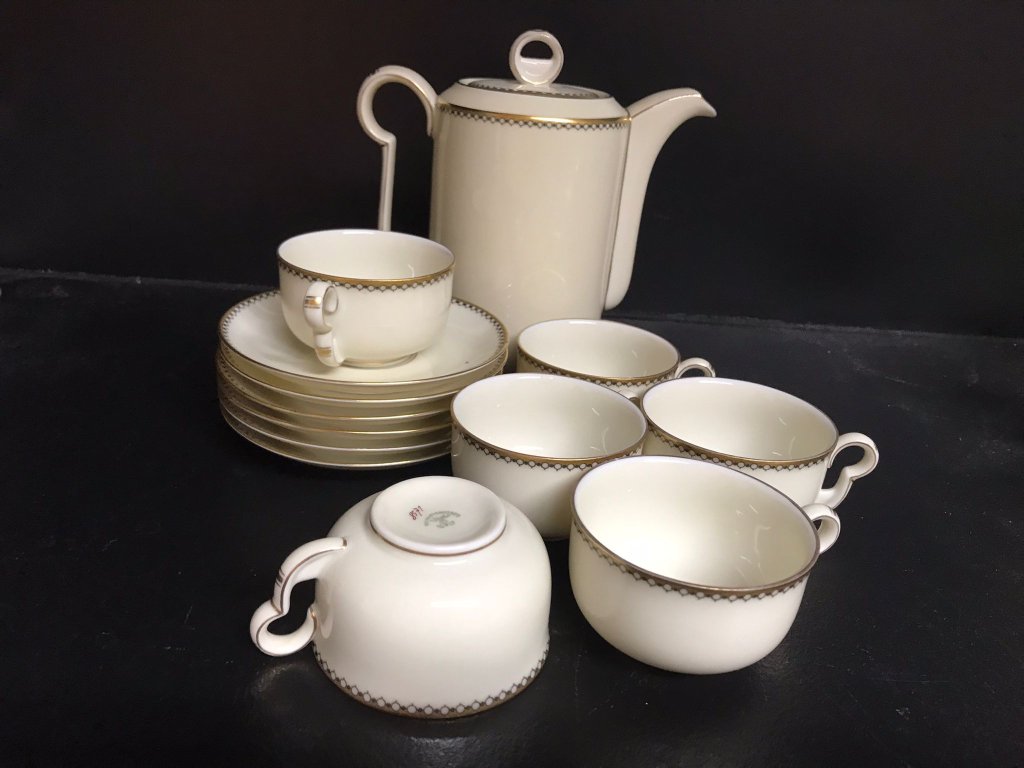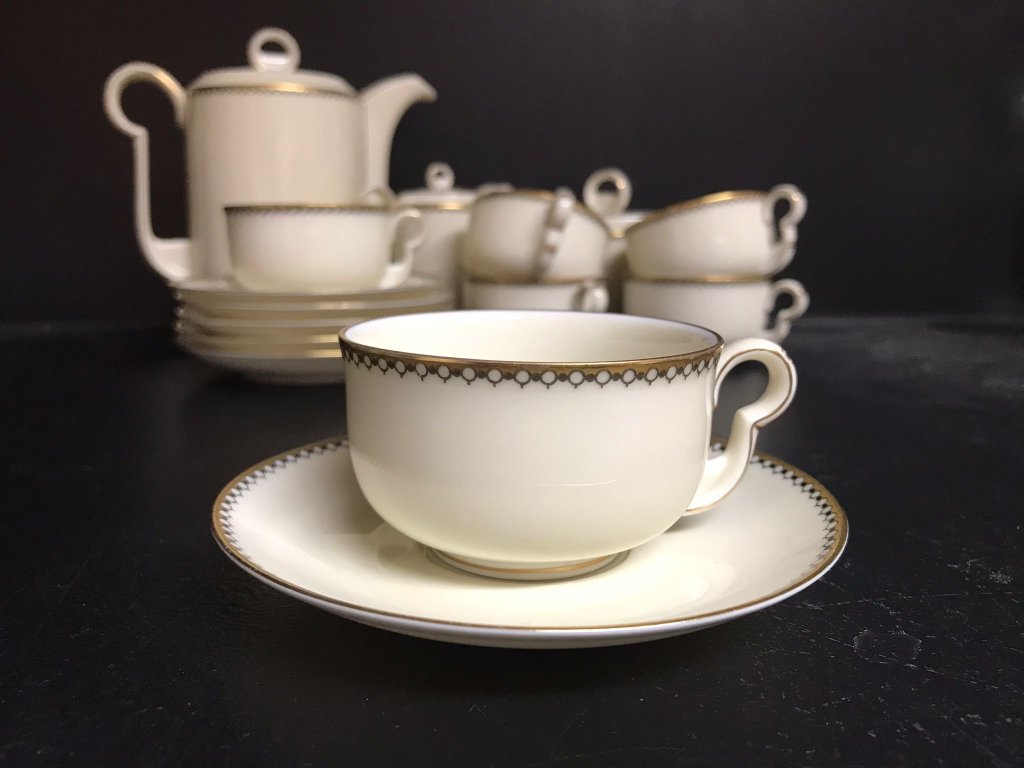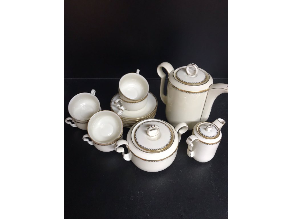 Art Deco. Servis označen 8571. Nepoužívaný, top stav. Rozměry: Konvička: výška 14 cm Mléčenka: výška 8 cm Cukřenka: výška 7 cm Hrnek: výška 4 cm, průměr 7 cm Podšálek: průměr 11,5 cm (H)