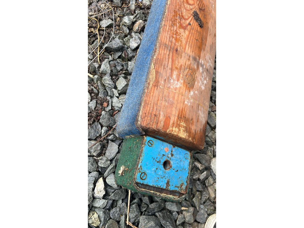 Dřevěná s kovovými montážními prvky. Používaná, oděrky místy. Rozměry: délka 447 cm, výška 17 cm, šířka 10 cm.