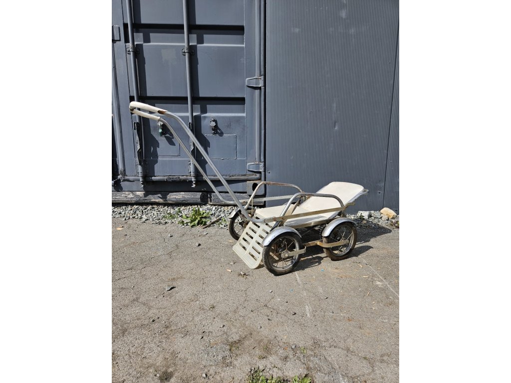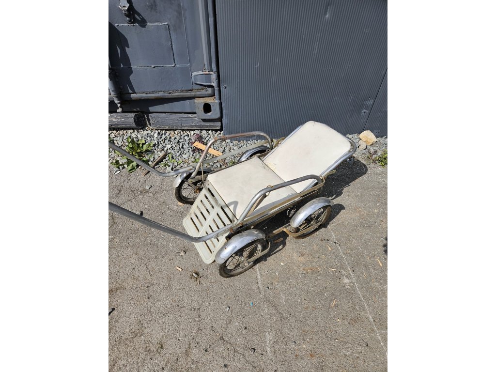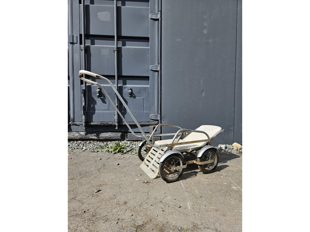 Starožitný dětský sportovní kočárek. Chrom místy se rzí. Vhodný k renovaci. Používaný, stav viz foto.