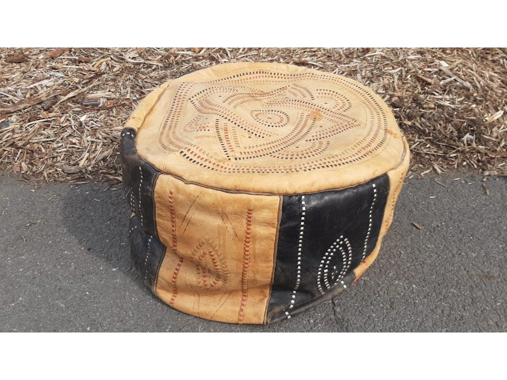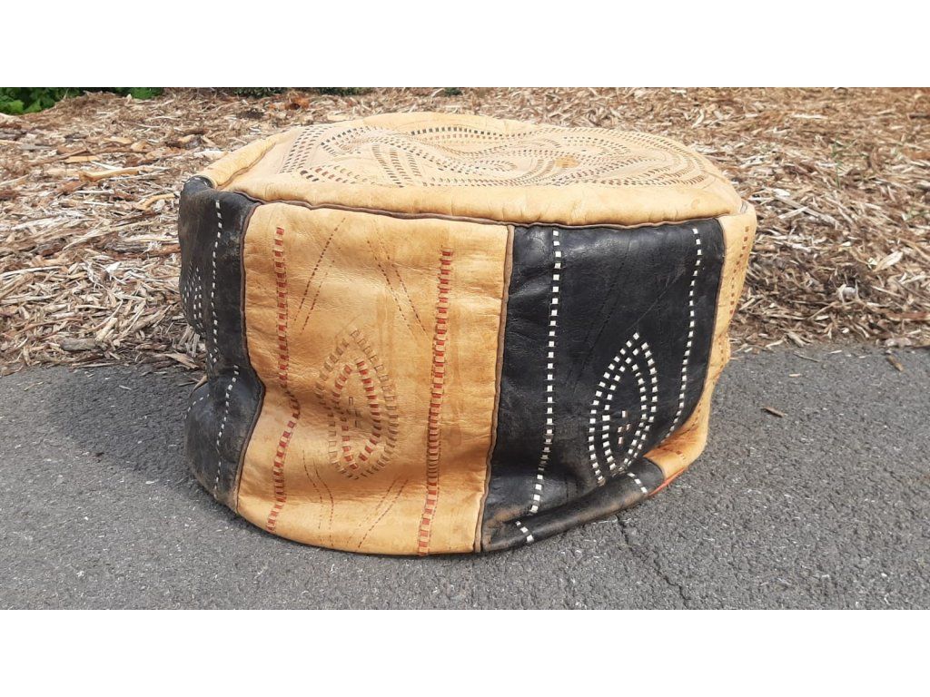 Kožený Taburet Podnožka Bobík Vintage Socialismus 70.-80. léta RETRO