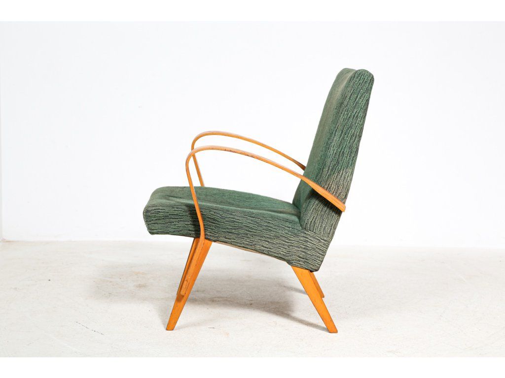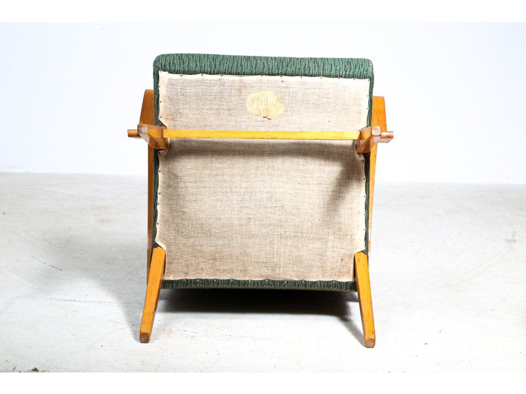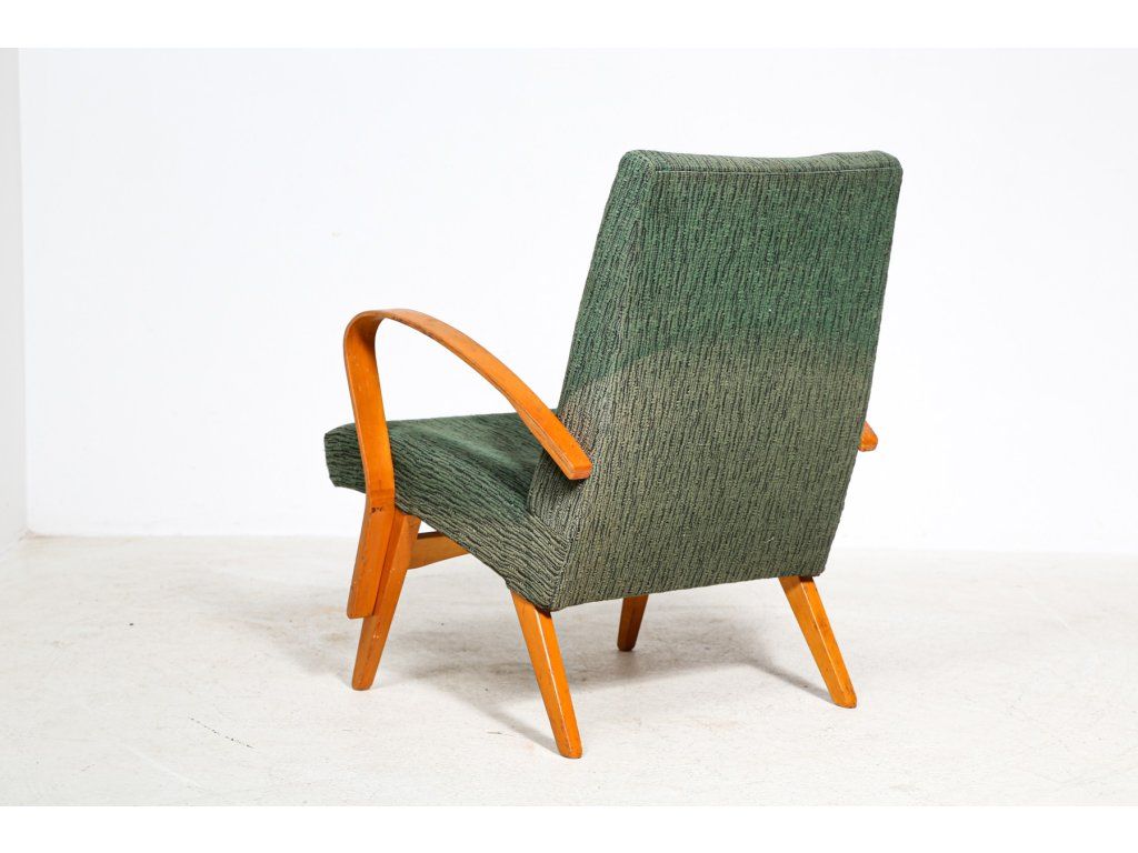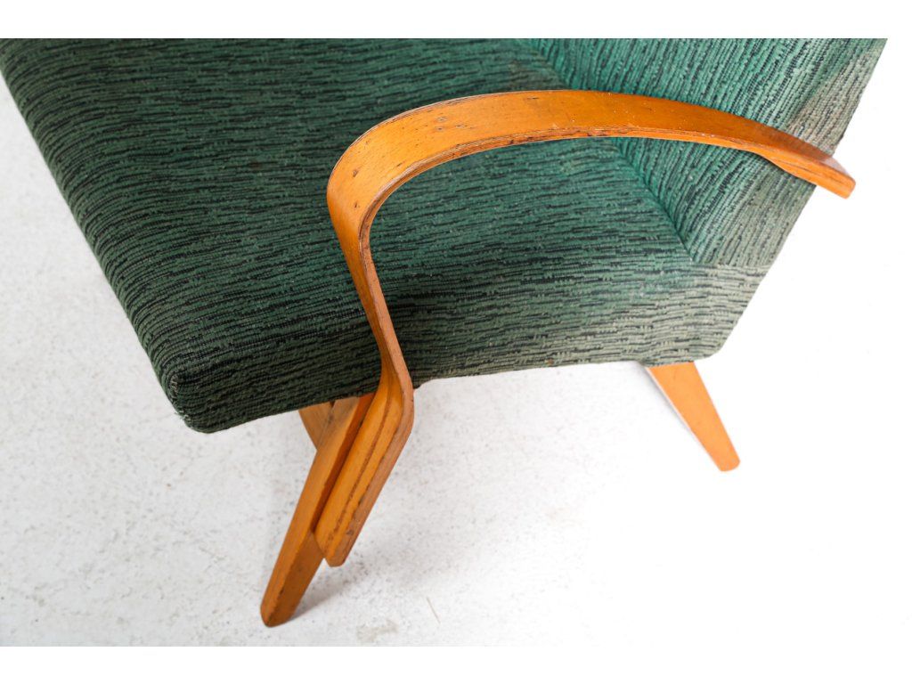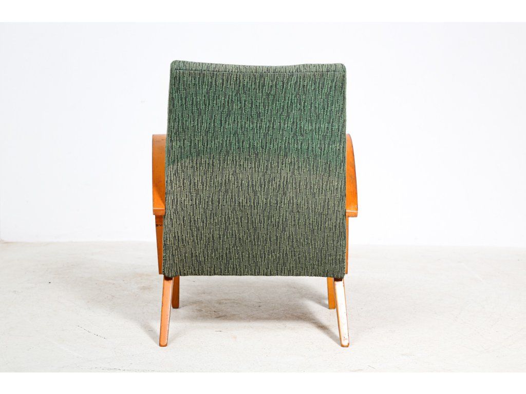 Křeslo čalouněné, dřevěná stabilní konstrukce.