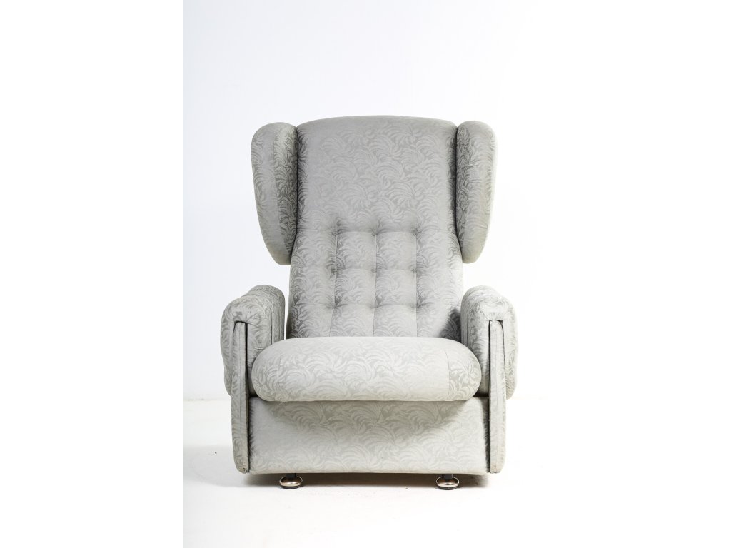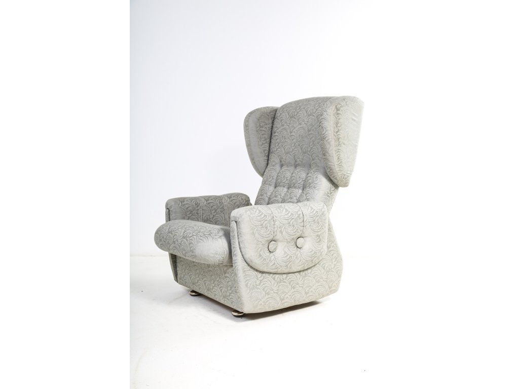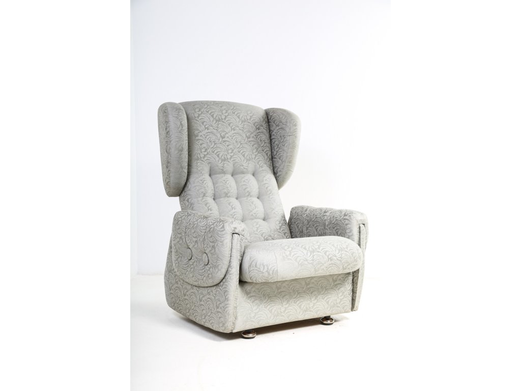 Křeslo ušák, satenové čalounění.