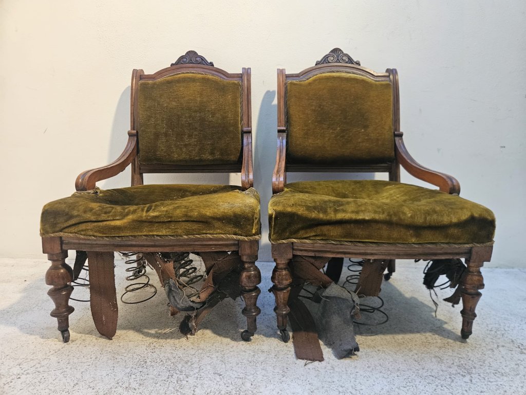 Konstrukčně stabilní, čalounění a péra k výměně. Uvedená cena za pár.