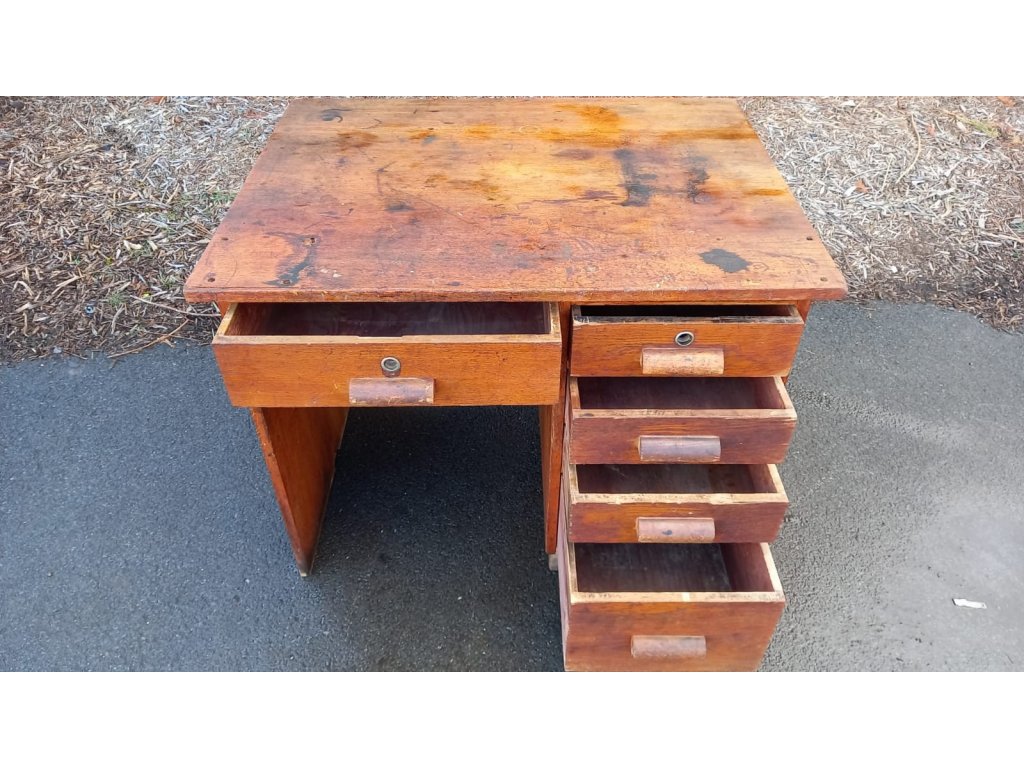 Pracovní Psací Stůl Ponk Zásuvky Socialismus RETRO Vintage