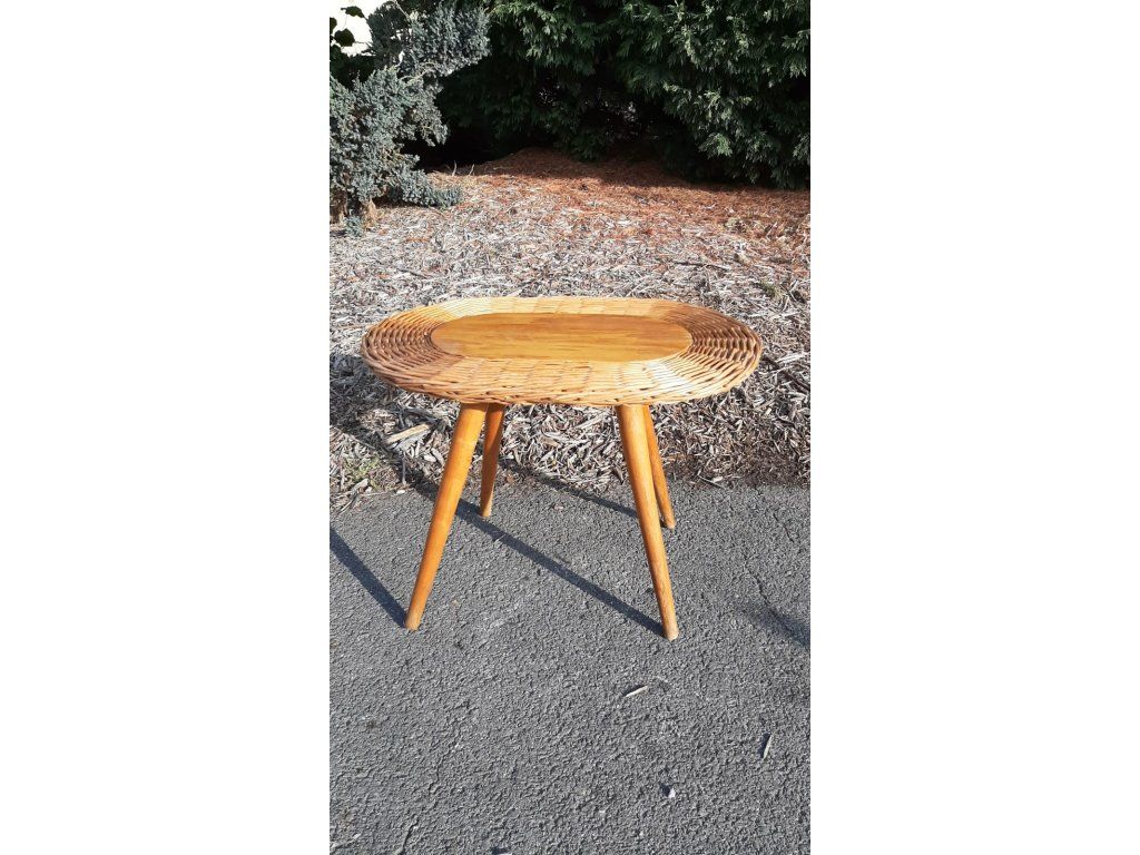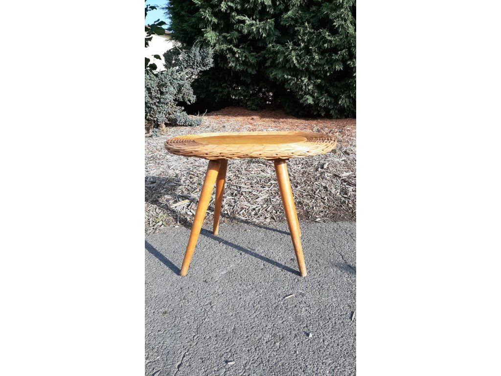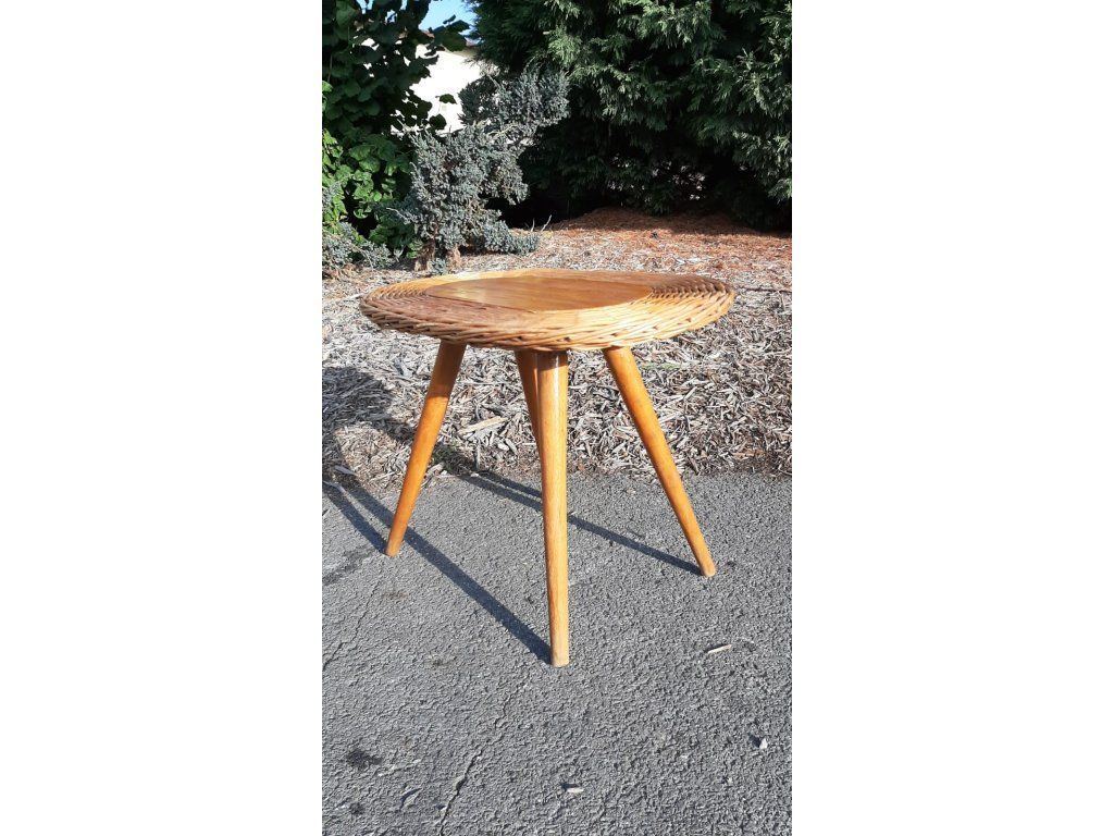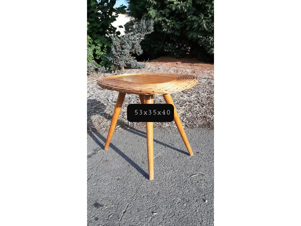 Proutěný Stolek Taburet Květinový Kuřácký RETRO