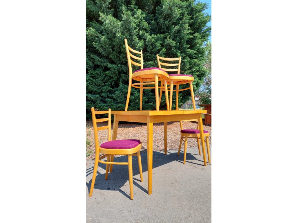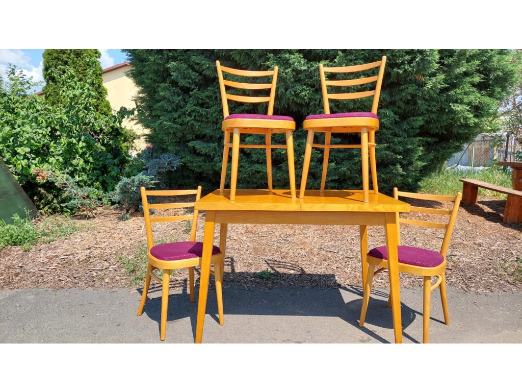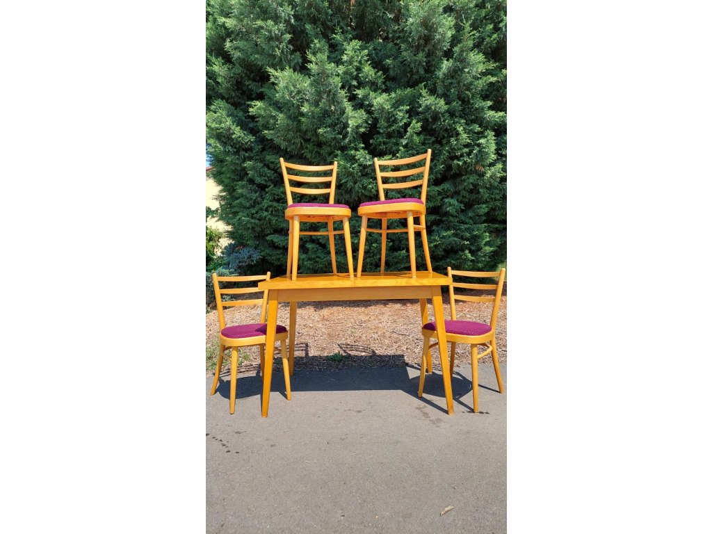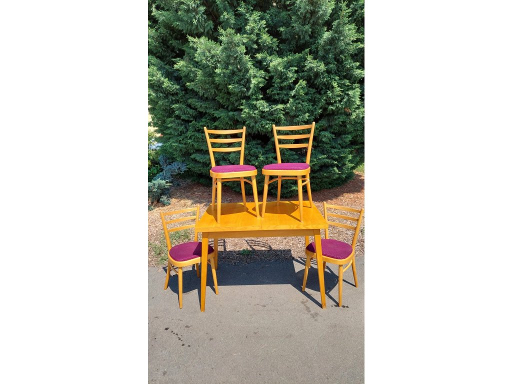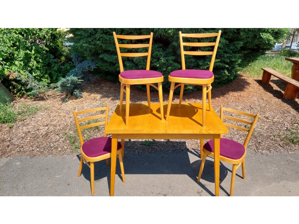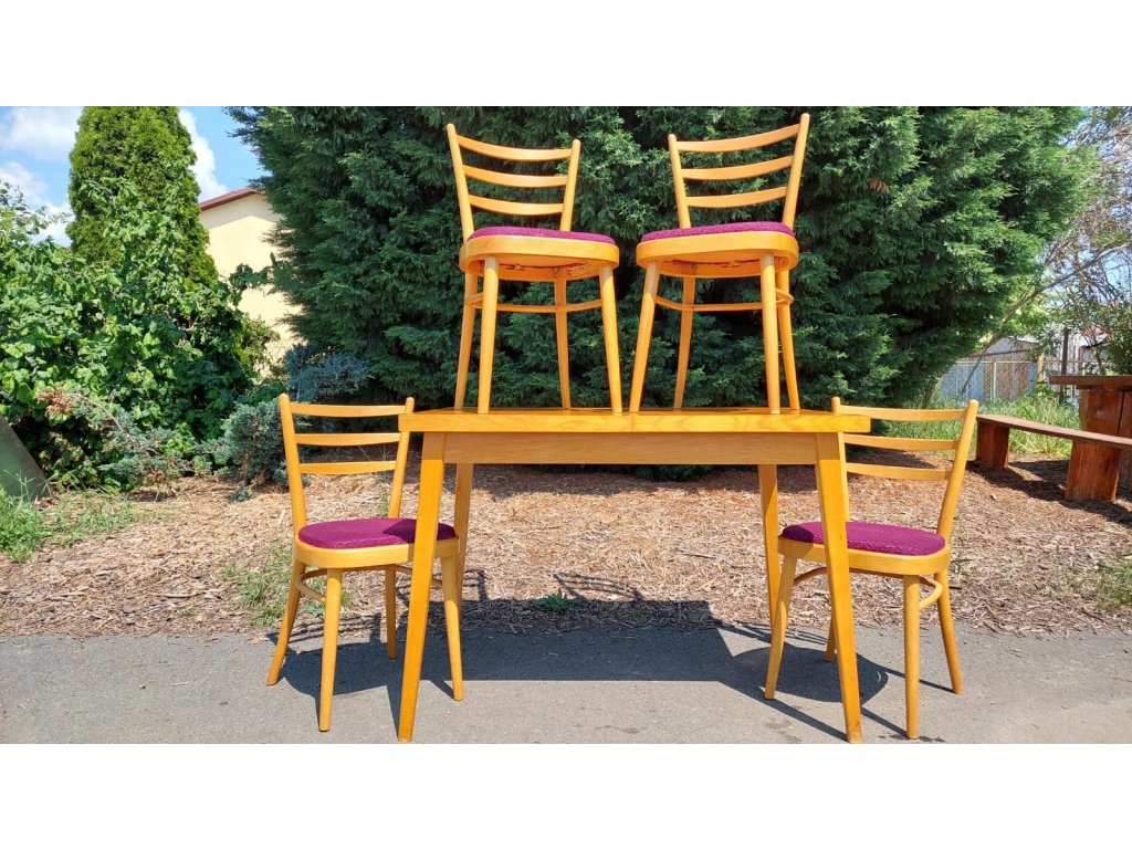 Rozkládací Jídelní Stůl + 4x Židle TON Thonet RETRO 70.-80.