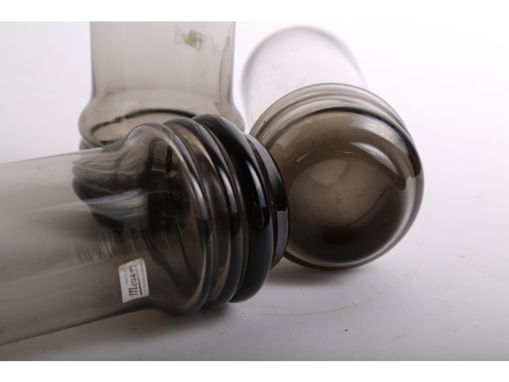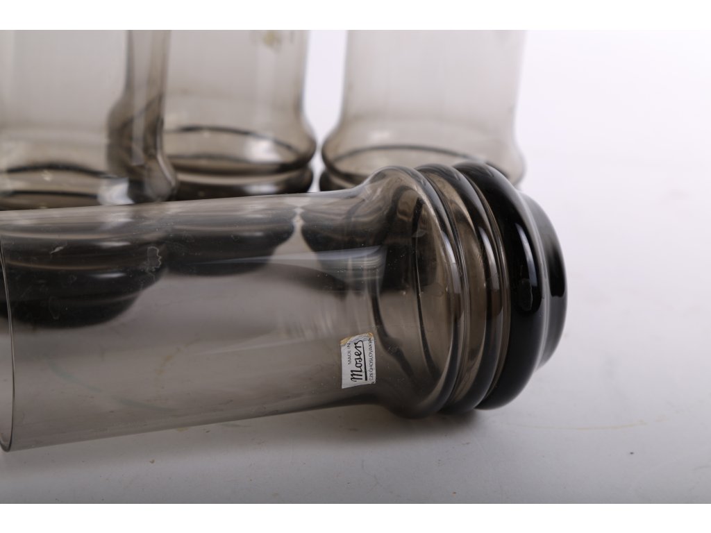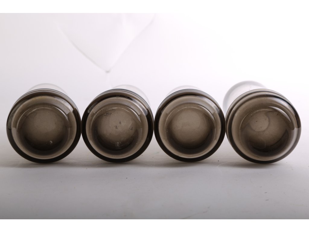 Retro, 70. léta. Kouřové sklo, silnostěnná podstava. Sada není úplná. Drobné oděrky. Výška 15 cm.