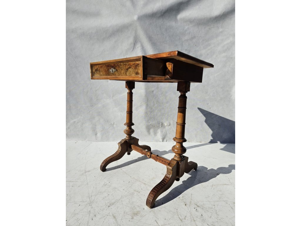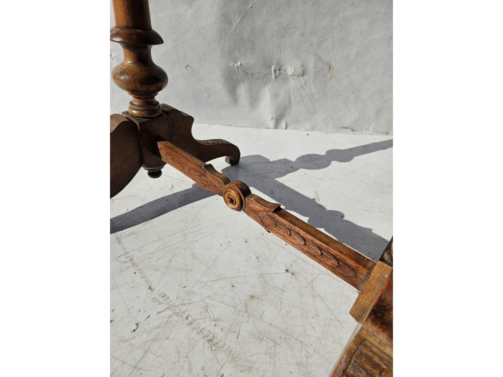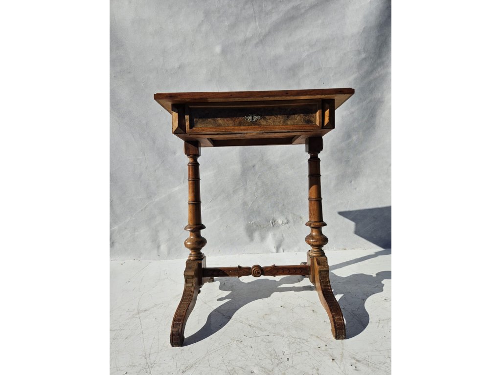 Řezba na nohách. Vrchní deska s oděrkami. Chybí klíček. Používaný, dobrý stav.