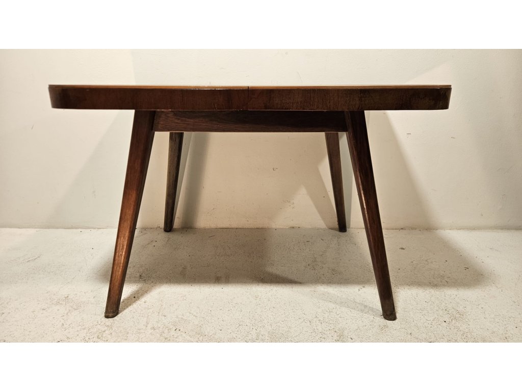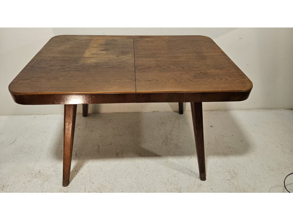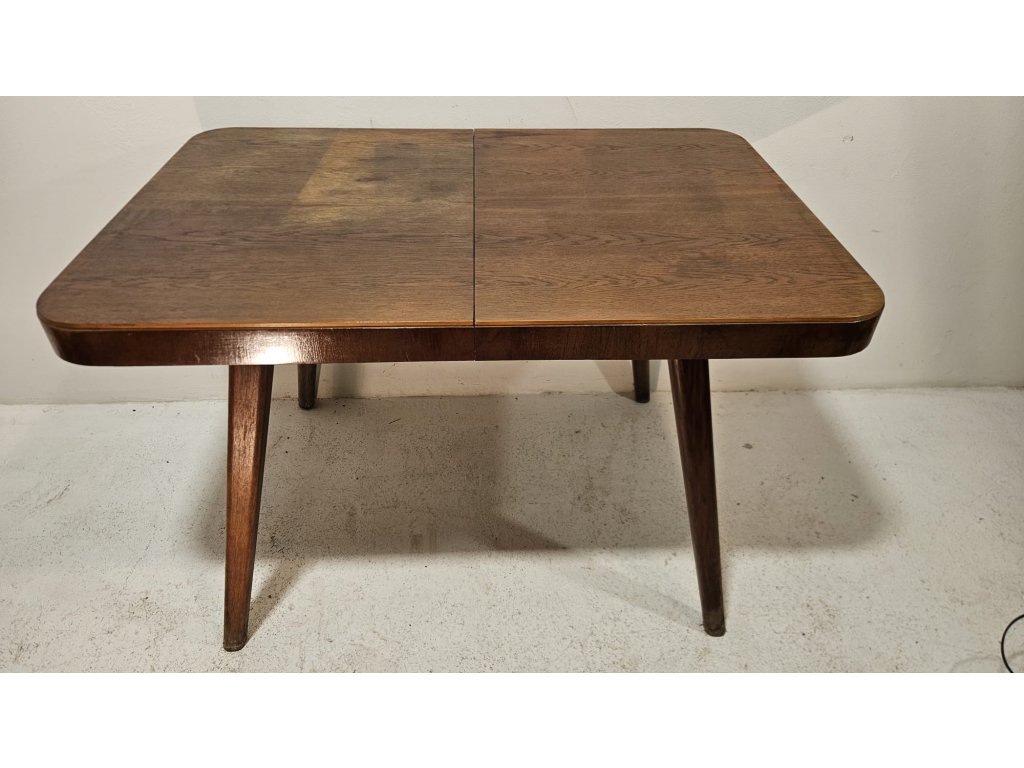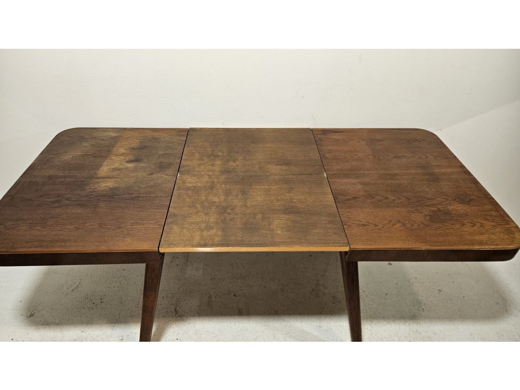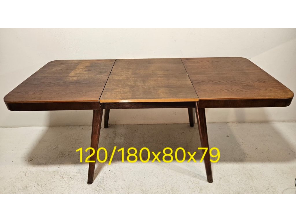 Konstrukčně stabilní, dýha místy s oděrkami. Retro, socialismus. používaný, stavviz foto. Rozměry: šířka 120/180 cm, délka 79 cm, výška 80 cm.