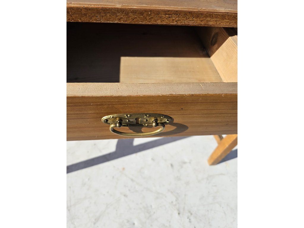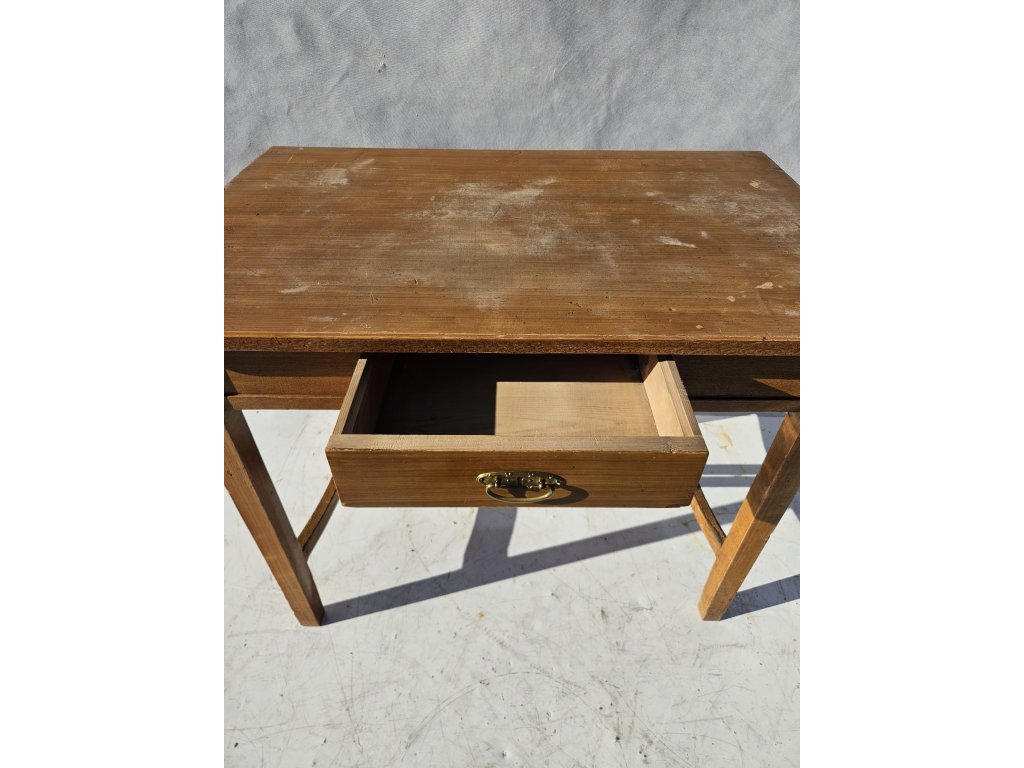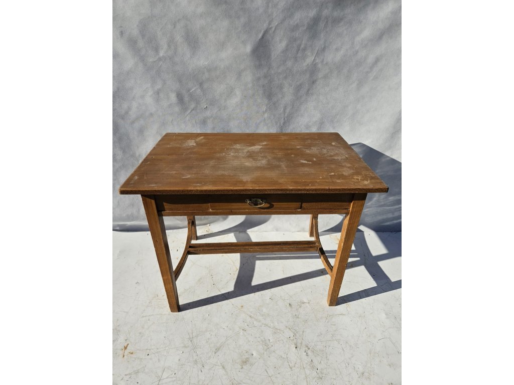 Konstrukčně stabilní, oděrky místy. Pracovní deska s povrchový poškozením. Používaný, stav viz foto. Vhodný k částečné renovaci.