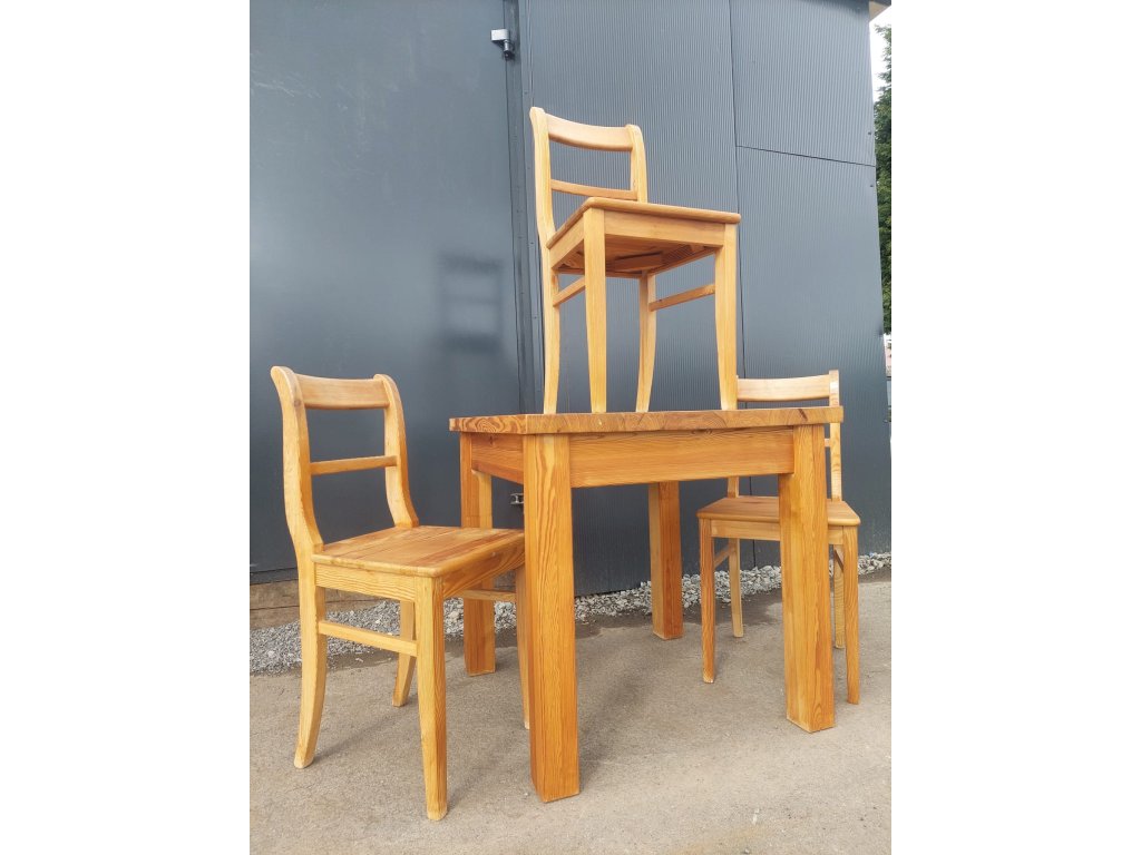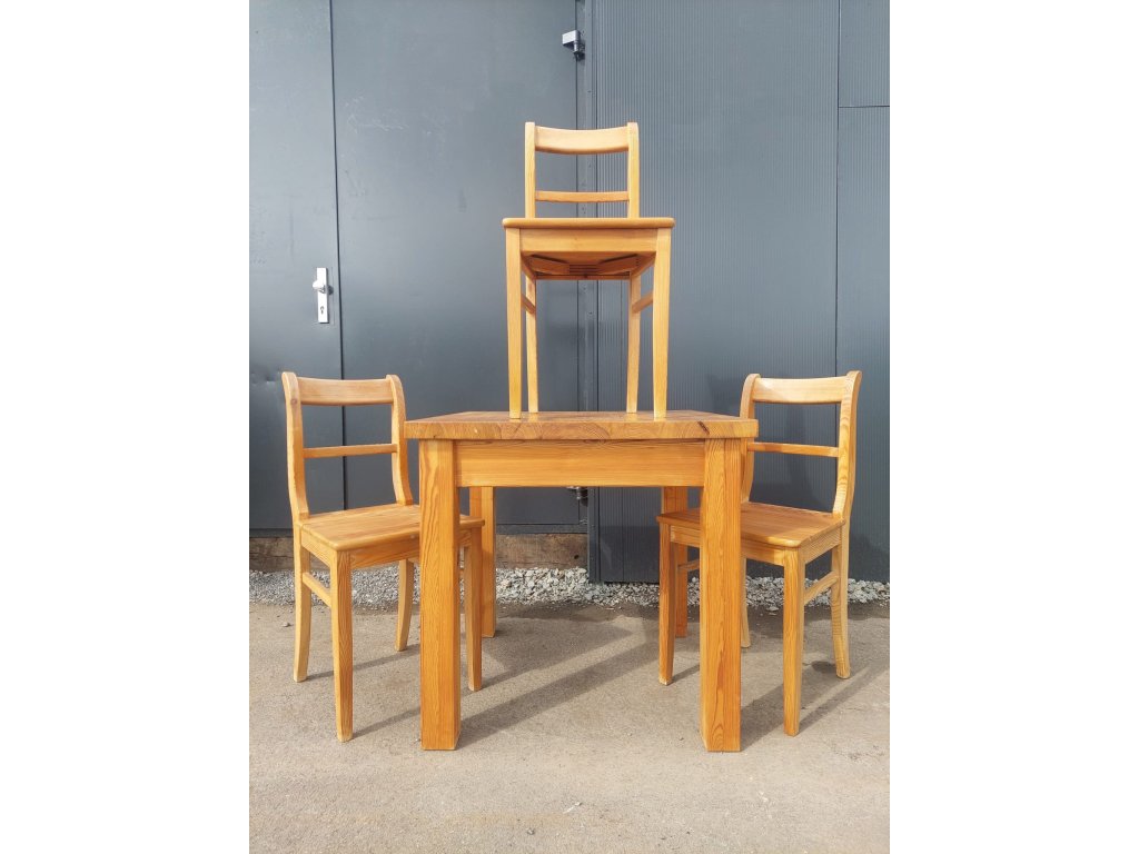 Stůl masivní, 3x židle, jídelní, kuchyňské