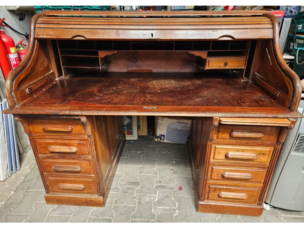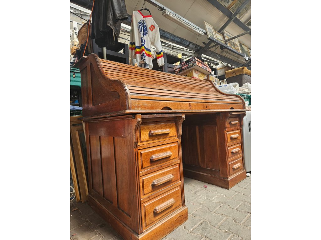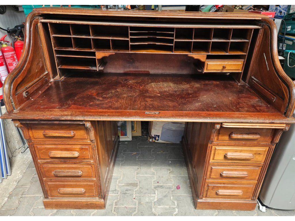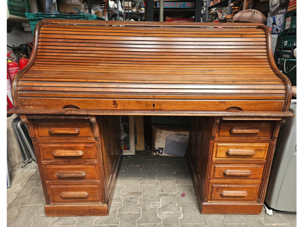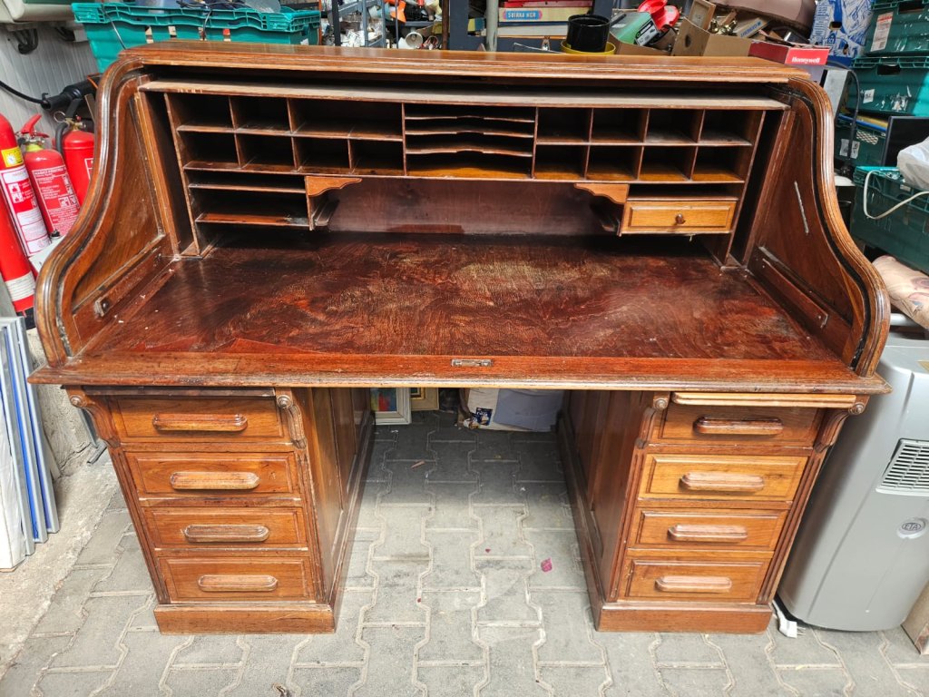 Mechanismus funkční, nezadrhává se. Chybí klíček. Používaný, velmi dobrý stav. Rozměry: délka 152 cm, výška 76/120 cm, šířka 86 cm, prostor pro židli 66 cm.