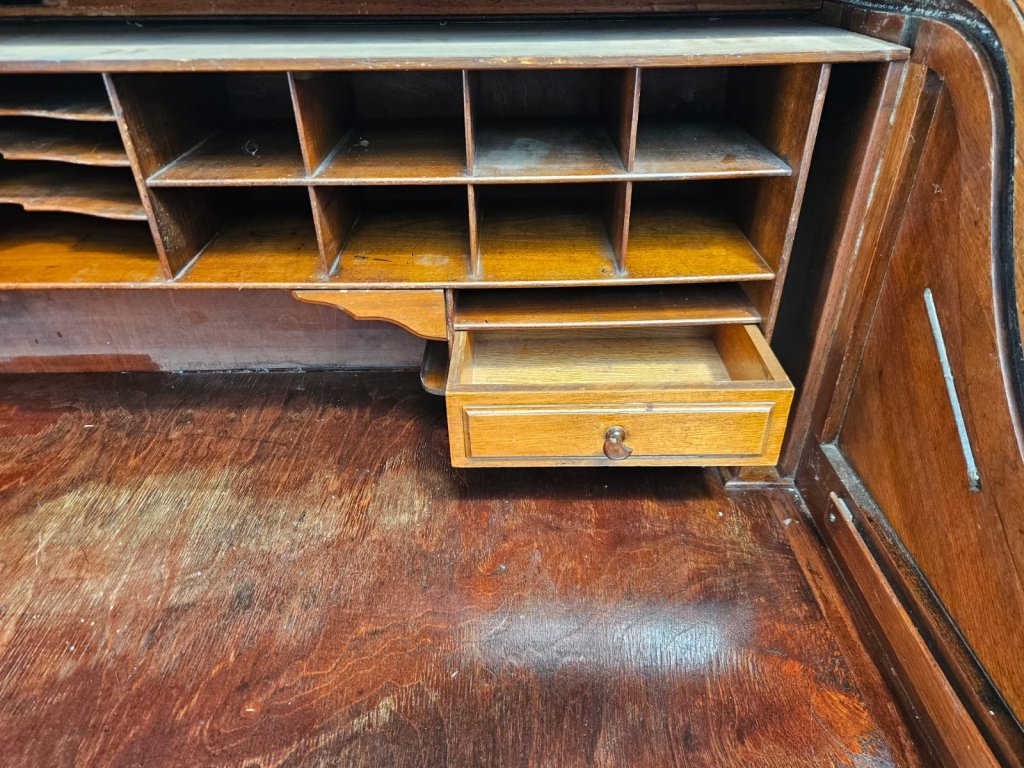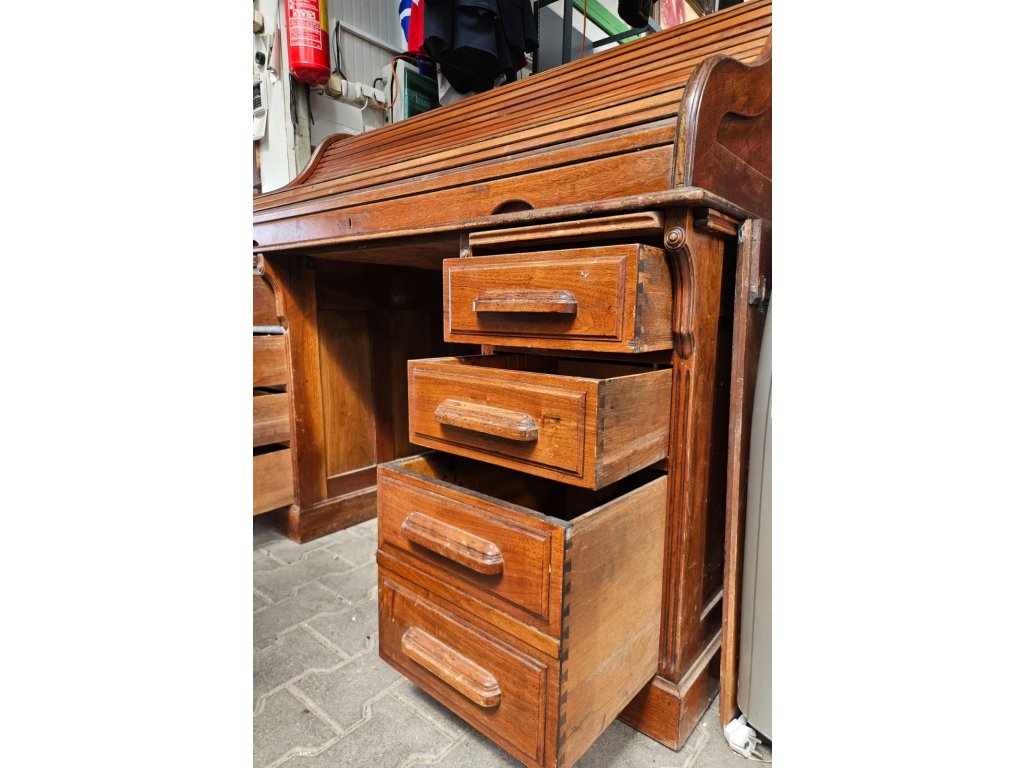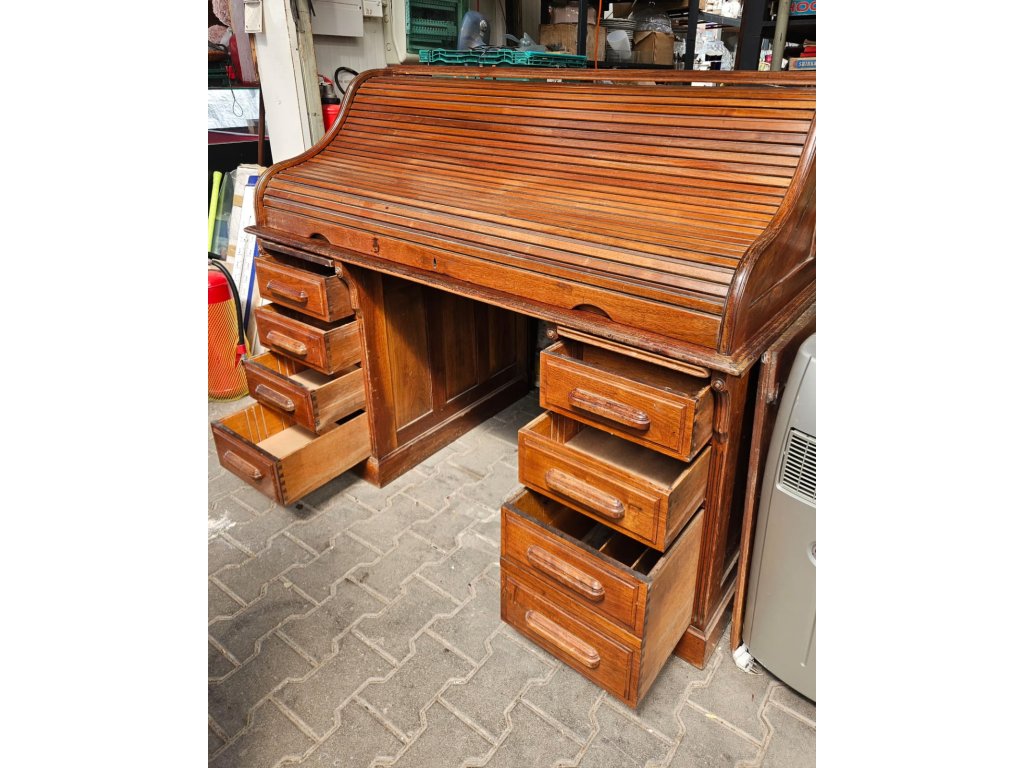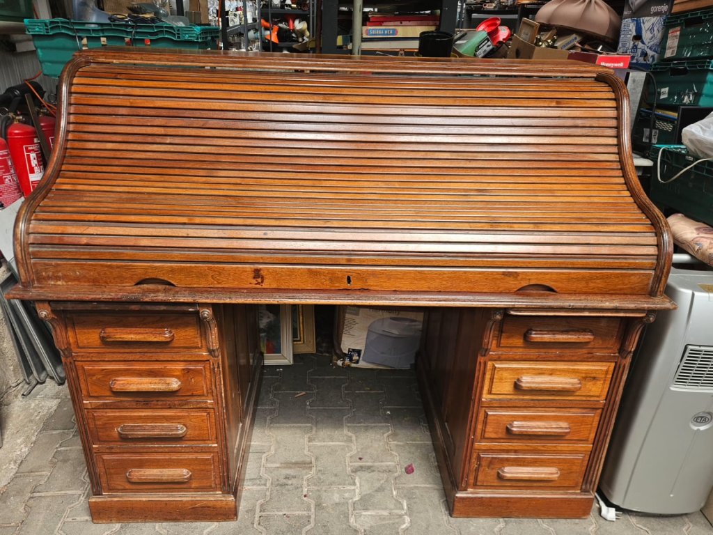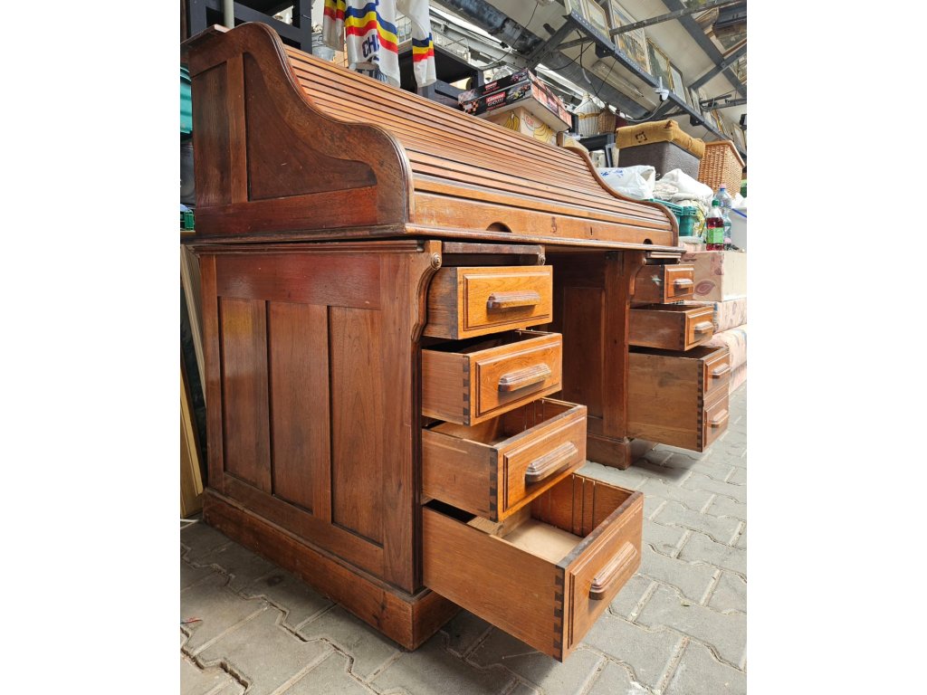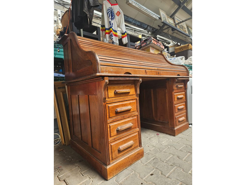 Mechanismus funkční, nezadrhává se. Chybí klíček. Používaný, velmi dobrý stav. Rozměry: délka 152 cm, výška 76/120 cm, šířka 86 cm, prostor pro židli 66 cm.