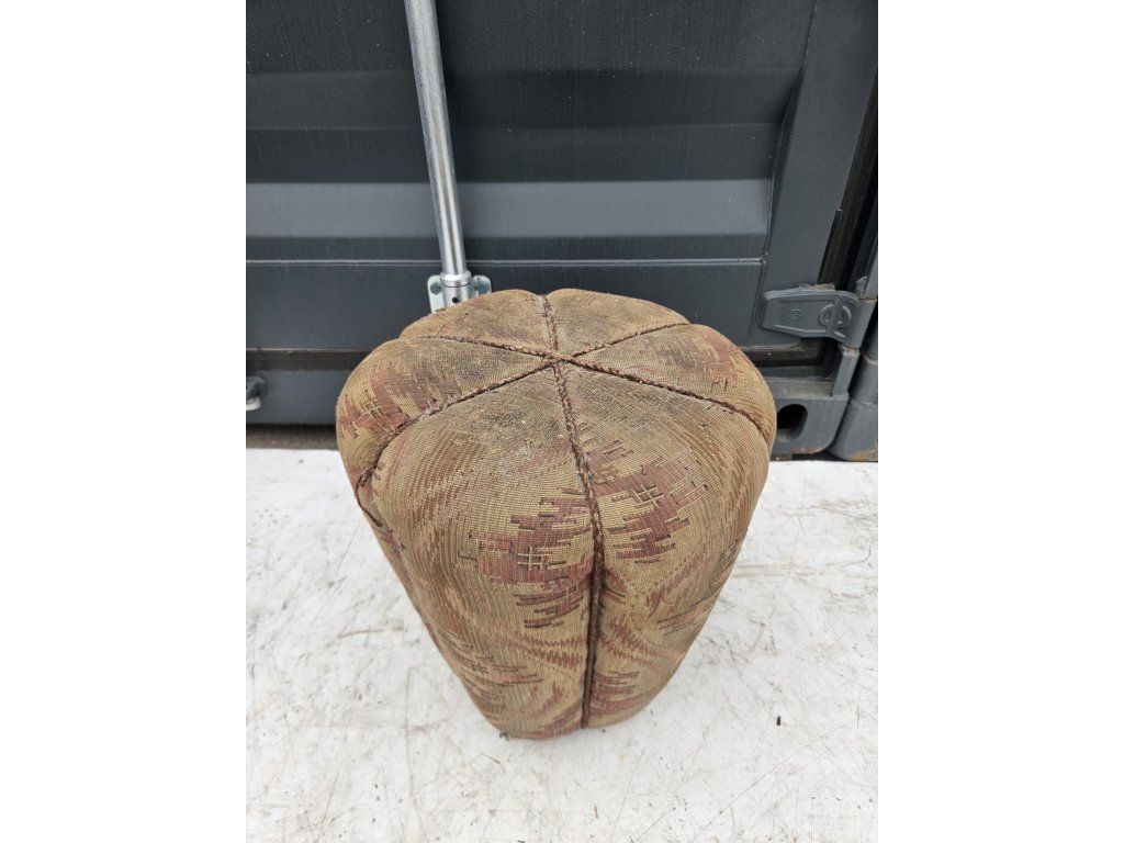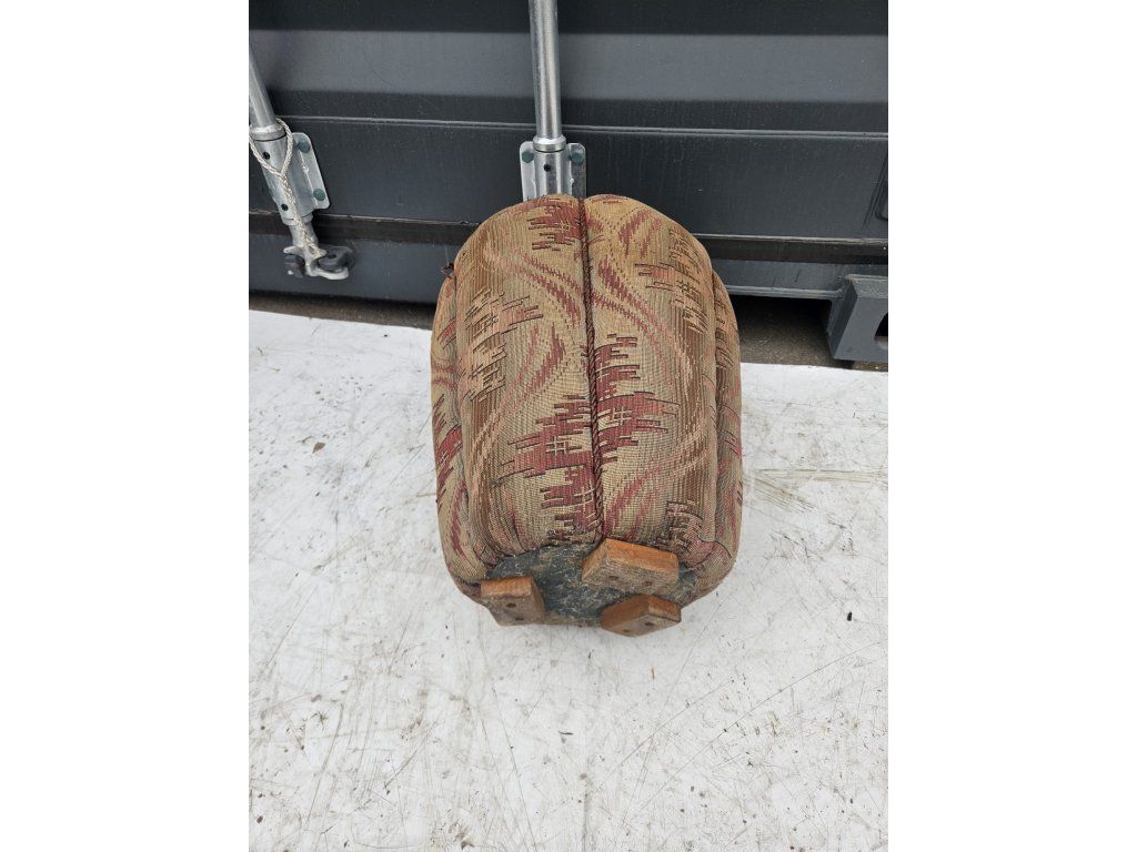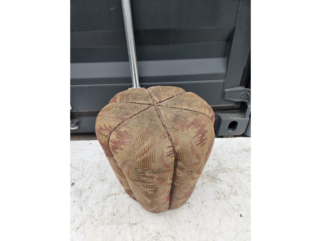 Původní stav. Konstrukčně stabilní, čalounění místy znečištěné, vytrhané nitky. Vhodný k renovaci. Rozměry: výška: 43 cm, průměr: 40 cm