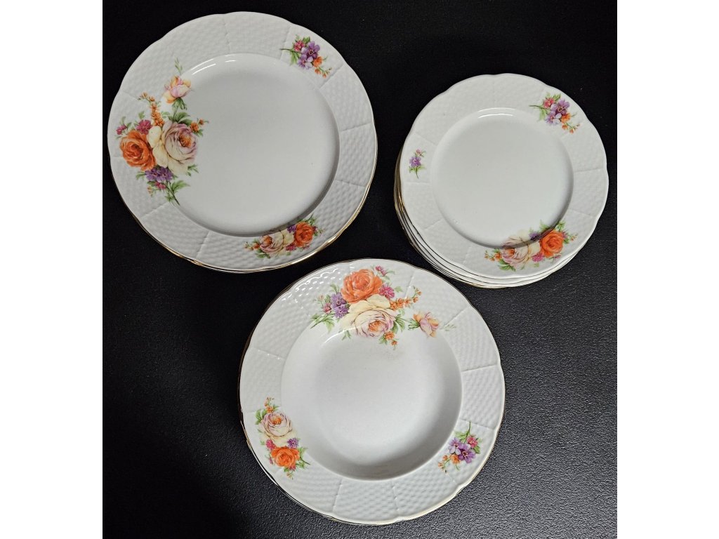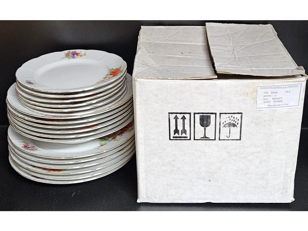 Sada je kompletní - 18 ks - 6x mělký, 6x hluboký, 6x dezertní. Top stav, nepoškozené, nepoužívané, v původní krabici.