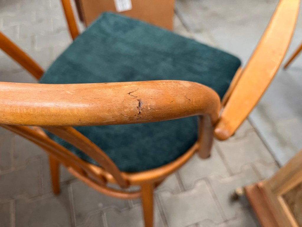TON- Antonín Šuman. Obě židle jsou po částečné renovaci. Typická konstrukce s opěradlem a područkami z ohýbaného bukového profilu. Uvedená cena za set.