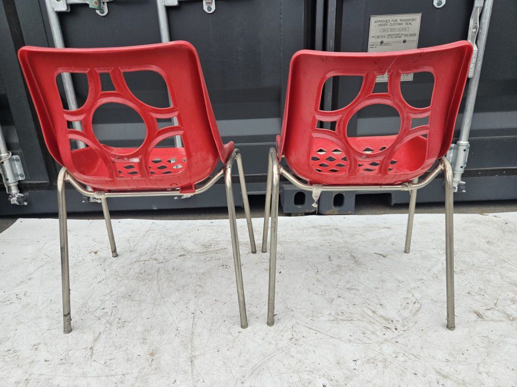 Ikonické židle z 70. let- výroba DDR. Kovová konstrukce, plastové sedáky na místech prasklé. Vhodné k renovaci. Rozměry: výška 43/74 cm, šířka 38 cm, hloubka 33 cm. Uvedená cena za pár.